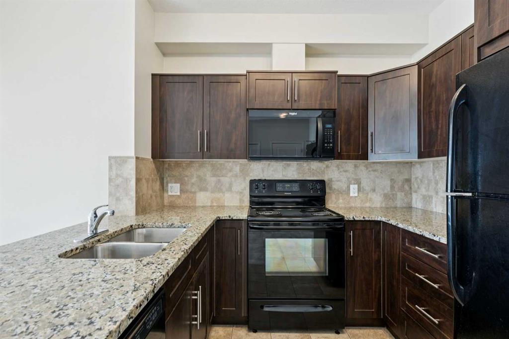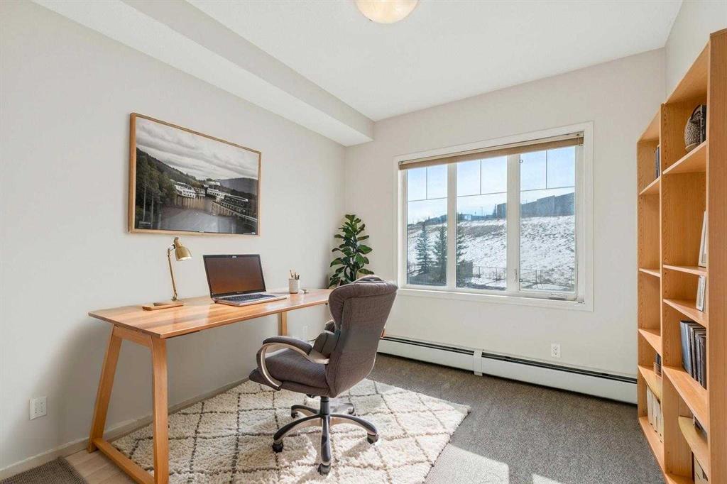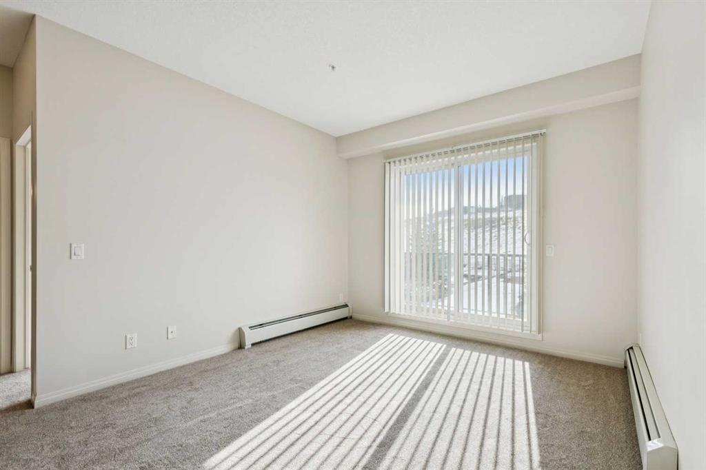 Filled with lots of natural light, while being modern & highly functional, this spacious & thoughtfully designed 2nd floor, 838 sq ft, 2 bdrm+2 full bath unit within the lovely Treo complex located in the popular community of Sherwood is sure to impress. The open concept layout emphasizes great flow & max privacy by placing the 2 well sized bedrooms at opposite ends while the main living area is the focal point in the middle. The inviting kitchen is well equipped with plenty of expresso shaker style cabinetry, full-size sleek black appliances (including brand new dishwasher & microwave hoodfan), & granite countertops. Nearby, the separate generous living & dining areas provides plenty of room to entertain while the covered balcony offers a nice vantage point that looks down on the greenspace behind the complex (and away from the other units). Feel comfortable having taller 9’ tall ceilings complimented by plenty of natural light from the sunny SW exposure. When you are ready to wind down, the well sized master bedroom will pamper you with a walkthrough closet & a 4 piece ensuite bathroom, while the 2nd bedroom, extra 4-piece bathroom, insuite laundry/storage room complete the package. Important features include; brand new carpet & upgraded underlay, fresh painted throughout, titled underground parking (with storage cage in front), & all blinds already done. Beyond the unit, enjoy the short walk to the many shops & amenities that Beacon Hill shopping centre has to offer (including Costco, Cdn Tire, Home Depot & much more!) while being down the street from a large green space/playground & the walking paths that the community has to offer. Additionally, more conveniences can be had with multiple shopping complexes (Sage Hill Crossing, Creekside, & along Sarcee Tr) & Inland Athletic Park being a short drive away. Quick access to Stoney Tr, Shaganappi Tr, & Sarcee Tr ensures this is a great location. With so much to offer inside & out, come view this amazing property today!