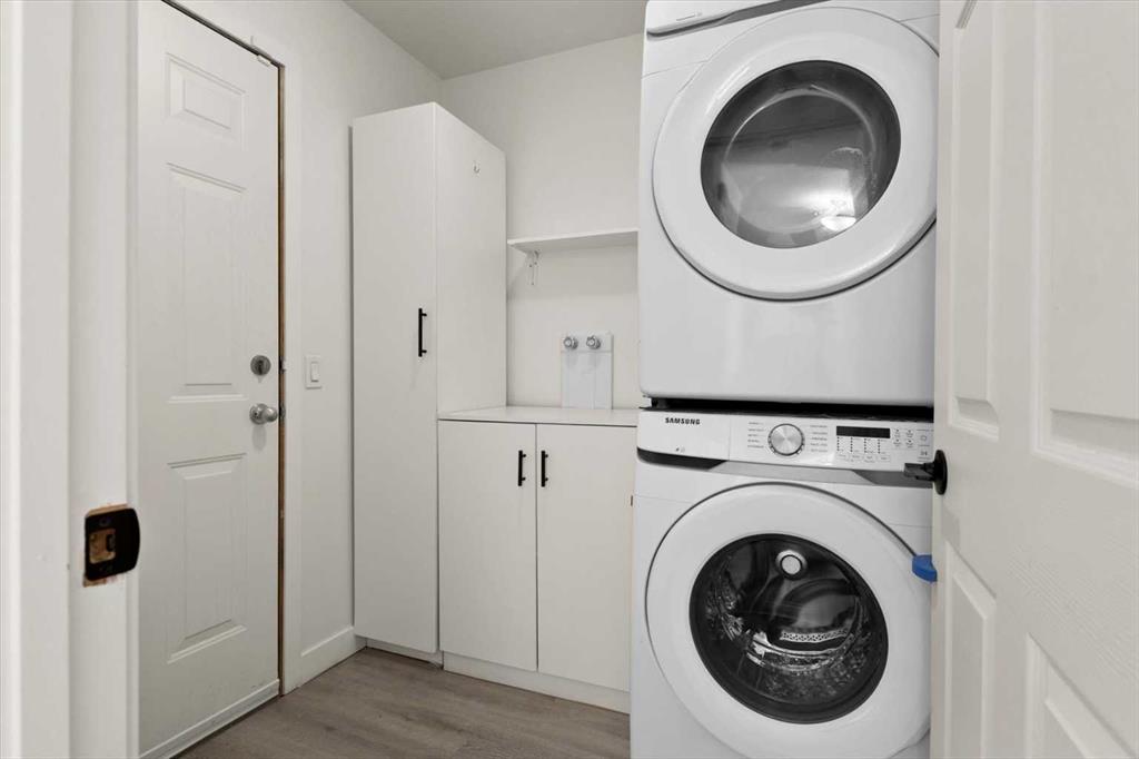 The fully developed walk-out basement features a legal suite complete with its own full kitchen, offering excellent flexibility for multi-generational living or rental income potential. With two full kitchens and separate access, the home is designed to adapt to evolving needs. The insulated double attached garage is fully finished with epoxy flooring, demonstrating that the same thoughtful upgrades extend beyond the interior living spaces. An additional rear parking stall adds valuable flexibility.