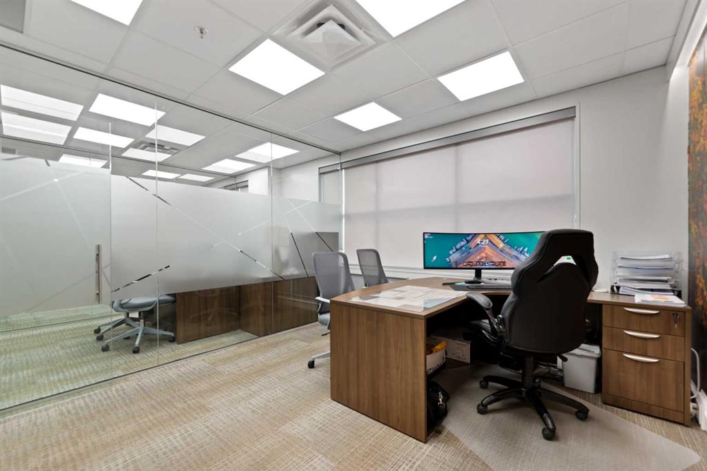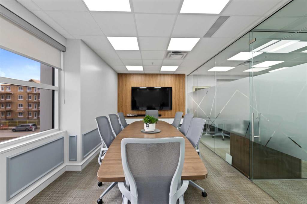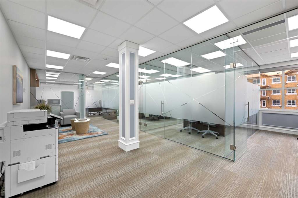 The unit features a functional layout with three private offices, a spacious conference room, and a convenient kitchenette, making it ideal for a variety of business uses. Large windows provide ample natural light, creating a bright and productive work environment.