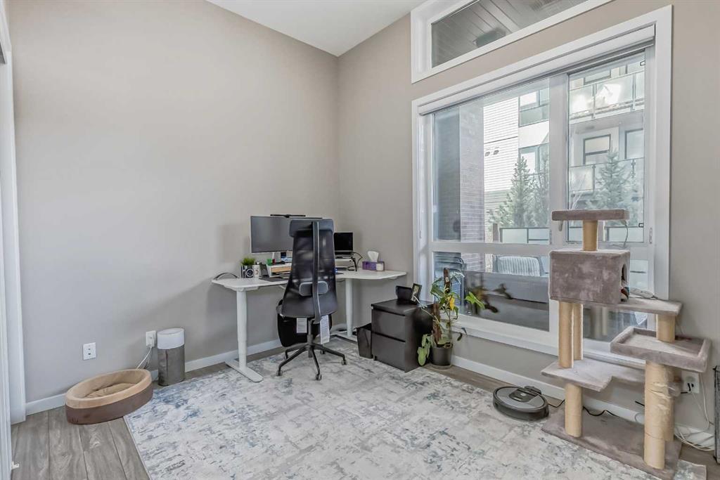 RARE FIND in Westman Village! This is not your typical condo, it’s one of the few GROUND FLOOR units offering private access and a spacious patio, creating a true sense of independence and ease. Perfect for those who love the convenience of condo living, but appreciate the feel of a home with its own front door. CONCRETE CONSTRUCTION means this unit is QUIET. Inside, every detail impresses with 11′ ceilings, highlighting the stunning chef’s kitchen with two-toned cabinetry, built-in appliances, quartz countertops and large island with built-in cabinetry and wine rack. The open layout and luxury vinyl plank flooring add warmth and style throughout. The floor-to-ceiling windows (equipped with Hunter Douglas Silhouettes throughout & blackout blinds in the primary bedroom) fill the space with natural light. You’ll also appreciate the in-unit laundry room with tons of additional storage, one titled underground parking stall, and an assigned storage unit for added convenience. Experience serenity on the (almost 500 SqFt) patio, with partial lake views and feeling like you’re tucked away in your own private alcove. Life at Westman Village means access to over 40,000 sq.ft. of resort-style amenities from indoor saltwater pools and hot tub to a state of the art fitness centre, golf simulator, wine vault, theatre, art and woodworking studios, and more. The complex offers 24-hour security, EV charging, car and pet wash, and beautifully landscaped outdoor areas with fire pits and gathering spaces. Right outside your door, explore a vibrant mix of shops and restaurants including Chairman’s Steakhouse, Alvin’s Jazz Club, Analog Coffee, and Diner Deluxe. You’ll also enjoy full lake access to Mahogany’s beaches, walking paths, and kayak areas. This one-of-a-kind ground floor unit combines luxury, comfort, and rare convenience in Calgary’s most coveted lake community. Opportunities like this don’t come often and once you see it, you’ll understand why.