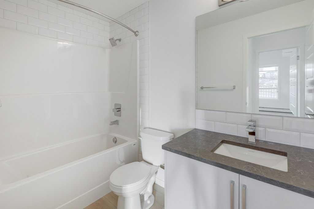 INTRODUCING GLACIER RIDGE, IN BEAUTIFUL NORTHWEST CALGARY. BUILT BY CEDARGLEN LIVING, WINNER OF THE Customer Insight BUILDER OF CHOICE AWARD, 6 YEARS RUNNING! BRAND NEW “GR07R” unit with high-spec features. You will feel right at home in this well thought-out, 915.99 RMS sq.ft. 2 bed, 2 bath home with open plan, 9′ ceilings, LVP flooring throughout (NO CARPET), Low E triple glazed windows, BBQ gas line on the patio, Fresh Air System (ERV), A/C rough-in, and so much more. The kitchen is spectacular with full height, two tone cabinets, quartz counters, upgraded bank of drawers for pots and pans, undermount sink, rough-in water line to the fridge and S/S appliances. The island is extensive with built in flush breakfast bar, which transitions into the spacious living area, perfect for entertaining. The spacious primary bedroom has a large bright window (triple pane windows) and huge walk-in closet. You’ll be impressed with the 4pc ensuite with double vanities and stand up shower. The second bedroom is located on the other side of the unit for privacy and a 4pc bath with quartz counters, and undermount sink is located next to it. Nearby is the spacious laundry/storage room, this is a must see (washer & dryer included). Highlights include: Hardie board siding, designer lighting package, sound reducing membrane to reduce sound transmission between floors, clear glass railing to balconies and 1 titled underground parking stall included. A once in a lifetime community in Northwest Calgary. Framed by views of the Rocky Mountains and distinguished by natural coulees that cross the land, Glacier Ridge offers a rare chance for families to live in a new community. PET FRIENDLY COMPLEX, IMMEDIATE POSSESSION AVAILABLE AND DON’T FORGET TO CHECK OUT THE VIRTUAL TOUR.