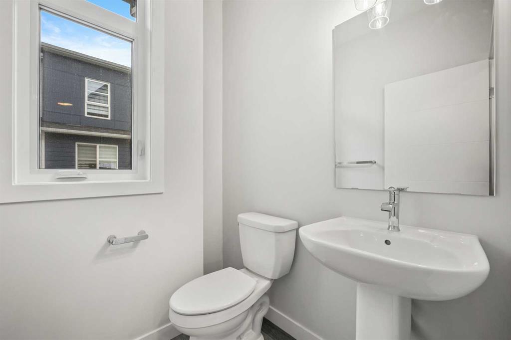 The main living level showcases a bright and open-concept layout enhanced by luxury vinyl plank flooring and large windows that fill the space with natural light. The modern kitchen is finished with quartz countertops, sleek cabinetry, and ample workspace, seamlessly connecting to the dining area and spacious living room—perfect for both everyday living and entertaining. A convenient 2-piece powder room completes this level. Step outside to enjoy your private balcony/deck, ideal for relaxing or enjoying fresh air.