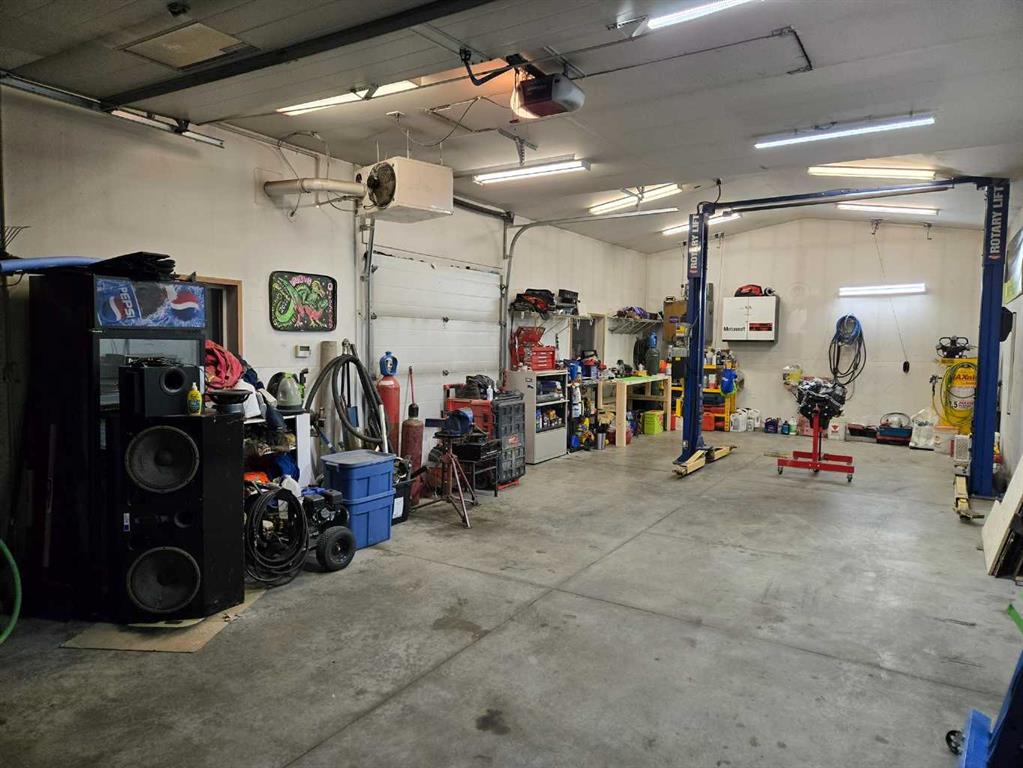 MECHANIC’S DREAM – This garage is incredible! Measuring 43’ x 19’ with 10’ doors, it’s fully heated, insulated, and wired and has a 10,000lb lift! This would cost at least $55K plus to rebuild! . Start a home based business! Room for 4 cars indoor with additional 4 car parking or RV parking outside! The charming home is ready for its next family, featuring new laminate flooring on the main level, two updated bathrooms, fresh paint, and newer upstairs windows—completely move-in ready! You’ll find 2 bedrooms on the main floor and 2 more downstairs, along with a spacious family room. The shingles, fridge, and stove are only about 7 years old, plus the home comes with central air. RV parking! A must-see property!