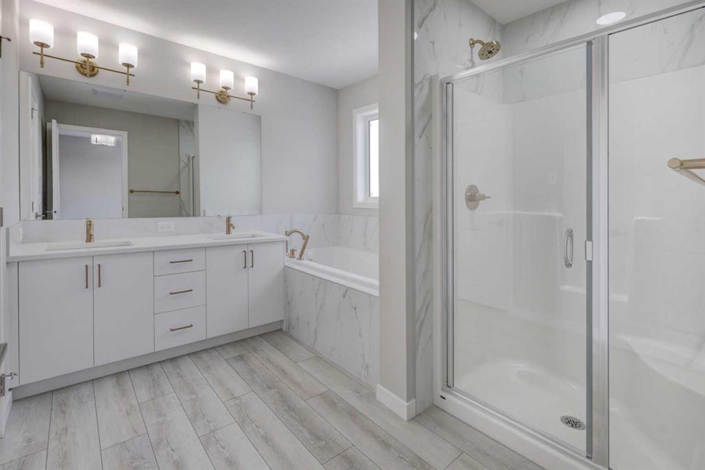 Welcome to Carrington – enjoy the benefits of living in an established NW neighborhood that brings a plethora of amenities right to your doorstep, along with quick access to major roadways. The community features two scenic storm ponds with pathway systems, environmental reserves, and playgrounds for all ages. Introducing the COLLINGWOOD – a brand-new home built by Excel Homes, an award-winning builder with over 35 years of experience, more than 15,000 homes constructed, and 75 industry accolades. This exceptional home offers 2,226 sq ft of beautifully upgraded living space, designed for families and entertaining, and features FIVE BEDROOMS ABOVE GRADE – including four on the upper level plus a main floor bedroom with a full bath; along with a FULLY DEVELOPED LEGAL, 2 bedroom SUITE . The chef-inspired kitchen is a true showstopper with a large central island, built-in stainless steel appliances, an abundance of crisp white cabinetry, and a cooktop with pot filler faucet. A fully equipped spice (summer) kitchen complements the main kitchen, offering matching cabinetry, stove, hood fan, and sink. The rear of the home is lined with expansive windows, flooding the space with natural light, while oversized patio doors lead to your sunny SOUTH-FACING backyard. The open-concept great room and dining area provide excellent space for family living and entertaining, enhanced by 9’ ceilings and luxury vinyl plank flooring throughout the main floor. Upstairs you’ll find four spacious bedrooms, thoughtfully designed for privacy, including a stunning primary suite separated by a vaulted bonus room. The primary retreat offers a large walk-in closet and a spa-inspired ensuite with dual sinks, a soaker tub, and a separate shower. A convenient laundry room and full family bath complete this level. The fully developed basement offers incredible value with a private side entrance leading to a LEGAL 2-bedroom suite, ideal for rental income, extended family, or a live-in nanny. Finished to the same high standards as the main home, this suite includes a full kitchen with stainless steel appliances, family room, two bedrooms, full bath, and its own laundry. Mechanical systems are fully separated with two furnaces and two hot water tanks. Your front attached garage also offers an EV CHARGING PORT. This is a must-see home offering space, flexibility, and income potential, all in an exceptional location and backed by the trusted quality of Excel Homes.