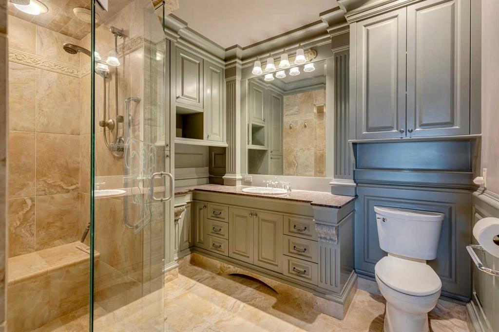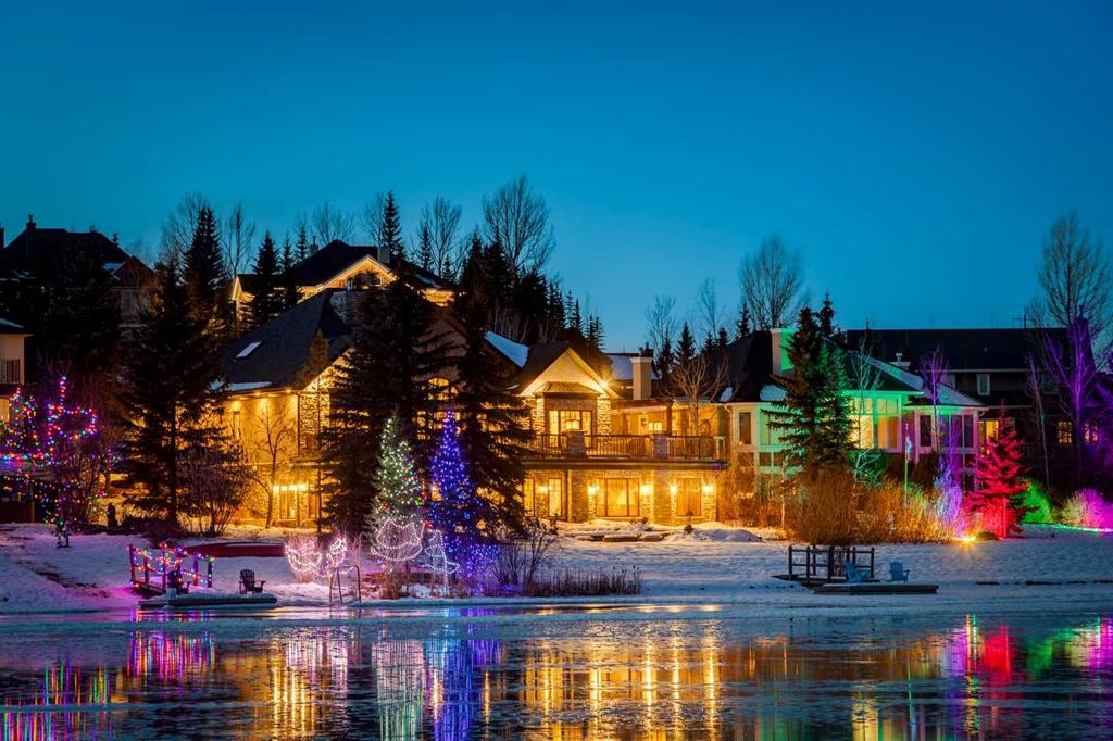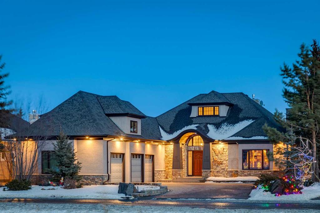 Discover one of the most iconic estate homes offered in prestigious Elbow Valley Estates—an extraordinary custom residence that combines European grandeur, architectural artistry, and exceptional craftsmanship. Perfectly positioned on a private lakefront lot, this executive walkout bungalow offers over 8000 square feet of exquisitely developed living space, designed with precision over years of thoughtful planning and executed by master artisans. From the moment you enter the grand foyer with its coffered and barrel-vaulted ceilings, it’s clear this is a home unlike any other. The main level features a sun-drenched great room with a double-sided fireplace and expansive windows framing unobstructed lake views. The heart of the home is the richly appointed ‘French Manor’ inspired kitchen—equipped for grand-scale entertaining with granite countertops, top-tier appliances including a Sub-Zero refrigerator, gas range with pot filler, two dishwashers, and a walk-in pantry. A cozy breakfast nook with fireplace and access to the expansive upper deck provides the perfect spot for morning coffee overlooking the water (with handi-cap access). An elegant formal dining room with custom glass cabinetry, a fully paneled library/office with fireplace, and a large laundry/sewing/hobby room complete the main level. A reverse osmosis water system is conveniently located in the craft room. The luxurious primary suite is a private sanctuary, featuring a vaulted sleeping area, two-way fireplace, and a spa-inspired circular ensuite with bubbling soaker tub, walk-in shower, dual vanities, and a generous dressing room with built-ins. The suite also offers deck access to enjoy tranquil lake views. A versatile loft functions as a full office or creative workspace, complete with multiple workstations—ideal for today’s remote professional or growing family. The lower level is designed for recreation and relaxation, boasting an authentic English-style pub with a full wet bar, games room, media/theatre room, and three additional spacious bedrooms—each with their own private ensuite and walk-in closet. Three solariums enhance the lower level, offering a fully enclosed hot tub retreat, home gym, and peaceful sitting room, all flooded with natural light. This remarkable residence is equipped with countless thoughtful upgrades, including two newer air conditioning units, newer hot water tank and sump pump, new sinks and hardware in the craft room and kitchen . The property also features a recently serviced irrigation system. Designed for effortless living, this home includes hydronic in-floor heating on all levels, a dramatic central staircase, private elevator, and a heated triple garage. Every detail reflects unparalleled quality and meticulous attention throughout. Outdoor living is equally exceptional, with sweeping views of the lake and beautifully landscaped grounds—an entertainer’s dream and a private oasis.