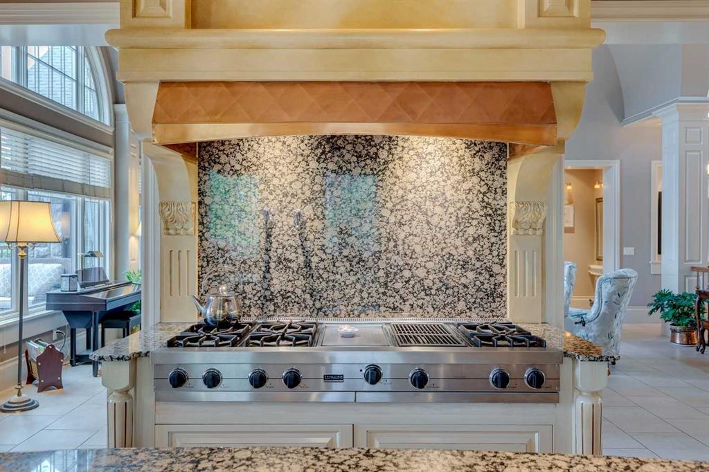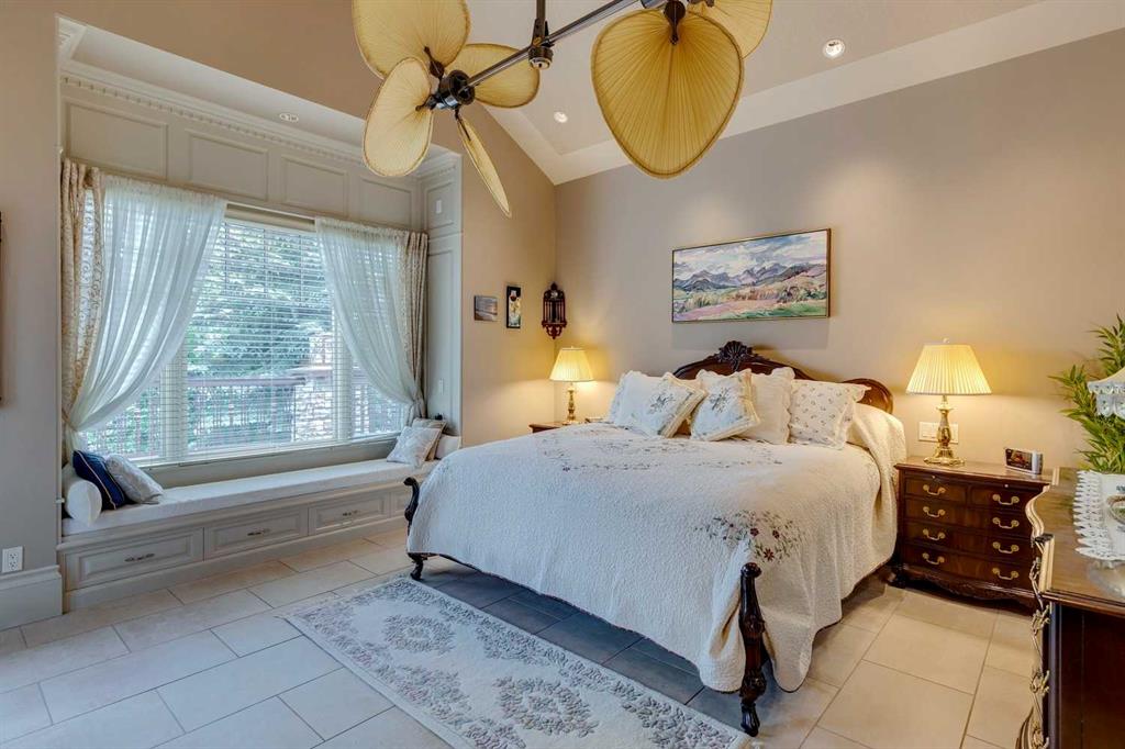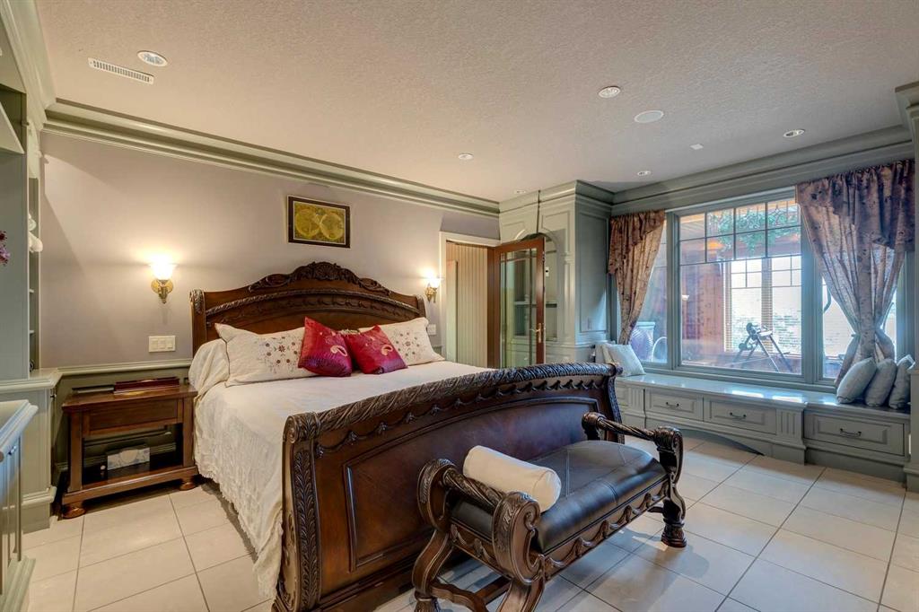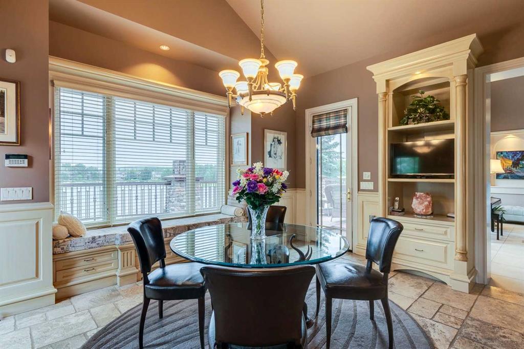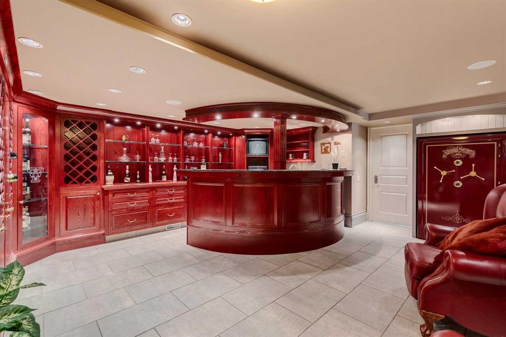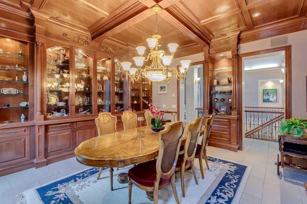 Discover one of the most iconic estate homes offered in prestigious Elbow Valley Estates—an extraordinary custom residence that combines European grandeur, architectural artistry, and exceptional craftsmanship. Perfectly positioned on a private lakefront lot, this executive walkout bungalow offers over 8000 square feet of exquisitely developed living space, designed with precision over years of thoughtful planning and executed by master artisans. From the moment you enter the grand foyer with its coffered and barrel-vaulted ceilings, it’s clear this is a home unlike any other. The main level features a sun-drenched great room with a double-sided fireplace and expansive windows framing unobstructed lake views. The heart of the home is the richly appointed ‘French Manor’ inspired kitchen—equipped for grand-scale entertaining with granite countertops, top-tier appliances including a Sub-Zero refrigerator, gas range with pot filler, two dishwashers, and a walk-in pantry. A cozy breakfast nook with fireplace and access to the expansive upper deck provides the perfect spot for morning coffee overlooking the water (with handicap access). An elegant formal dining room with custom glass cabinetry, a fully paneled library/office with fireplace, and a large laundry/sewing/hobby room complete the main level. A reverse osmosis water system is conveniently located in the craft room. The luxurious primary bedroom is a private sanctuary, featuring a vaulted sleeping area, two-way fireplace, and a spa-inspired circular ensuite with bubbling soaker tub, walk-in shower, dual vanities, and a generous dressing room with built-ins. The master bedroom also offers deck access to enjoy tranquil lake views. A versatile loft functions as a full office or creative workspace, complete with multiple workstations—ideal for today’s remote professional or growing family. The lower level is designed for recreation and relaxation, boasting an authentic English-style pub with a full wet bar, games room, media/theatre room, and three additional spacious bedrooms—each with their own private ensuite and walk-in closet. Three solariums enhance the lower level, offering a fully enclosed hot tub retreat, home gym, and peaceful sitting room, all flooded with natural light. This remarkable residence is equipped with countless thoughtful upgrades, including two newer air conditioning units, newer hot water tank and sump pump, new sinks and hardware in the craft room and kitchen . The property also features a recently serviced irrigation system. Designed for effortless living, this home includes hydronic in-floor heating on all levels, a dramatic central staircase, private elevator, and a heated triple garage. Every detail reflects unparalleled quality and meticulous attention throughout. Outdoor living is equally exceptional, with sweeping views of the lake and beautifully landscaped grounds—an entertainer’s dream and a private oasis.