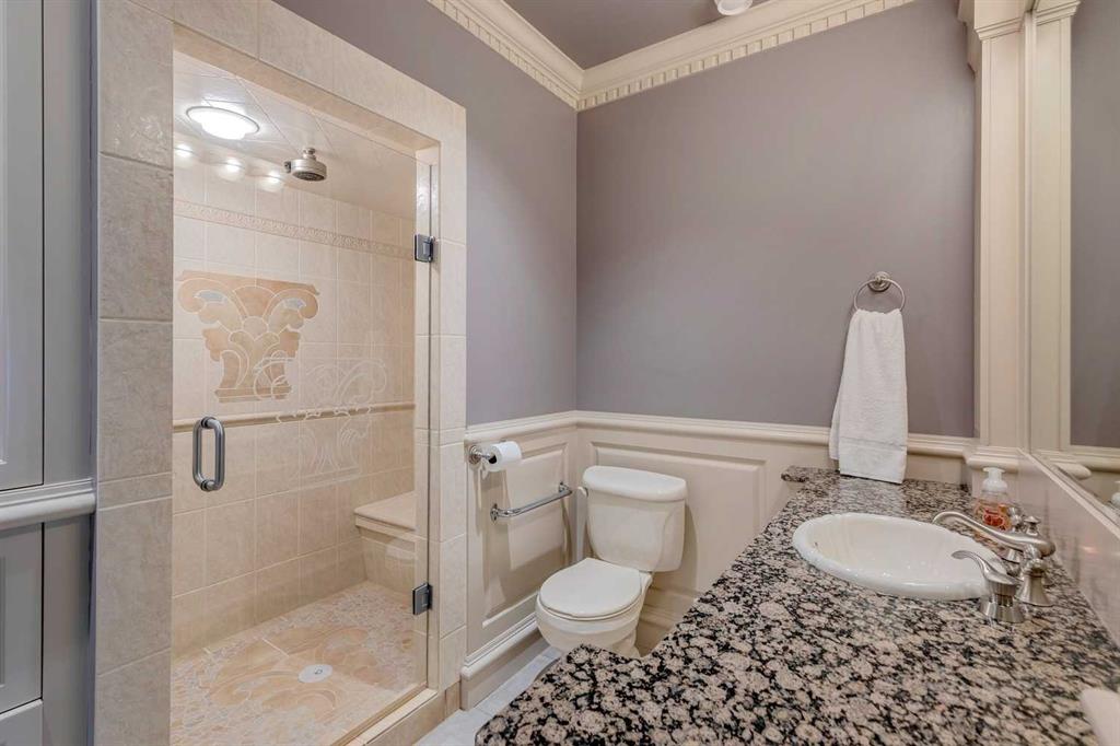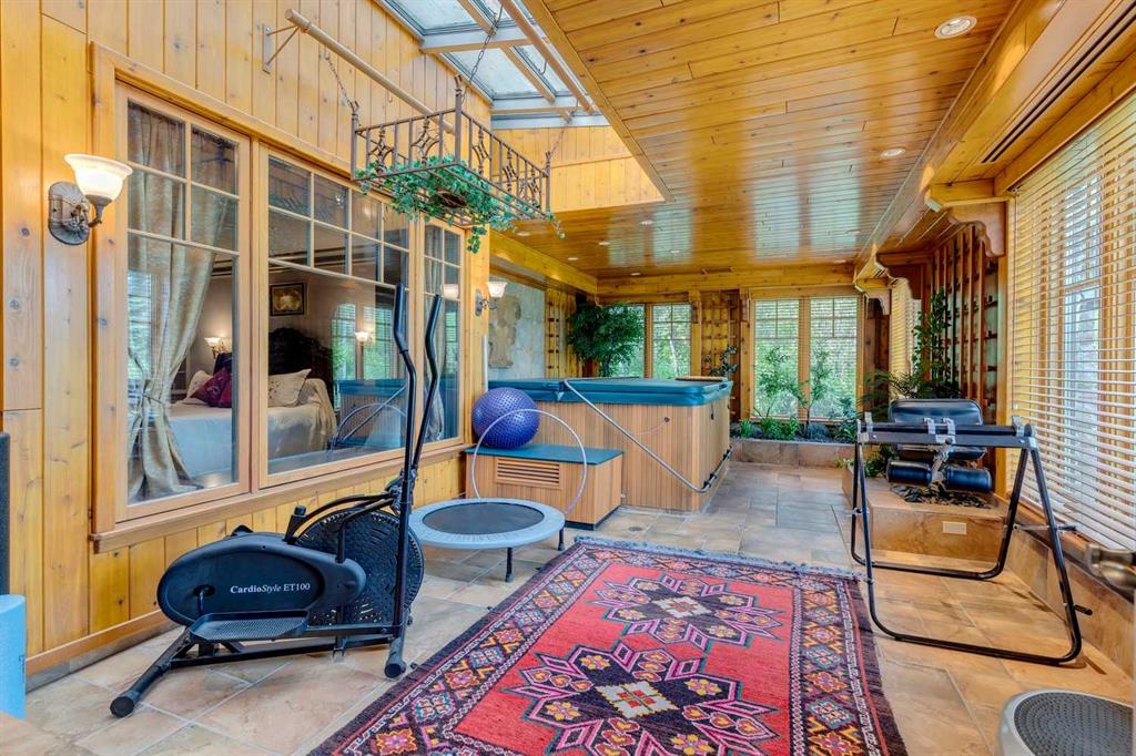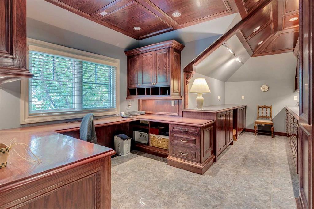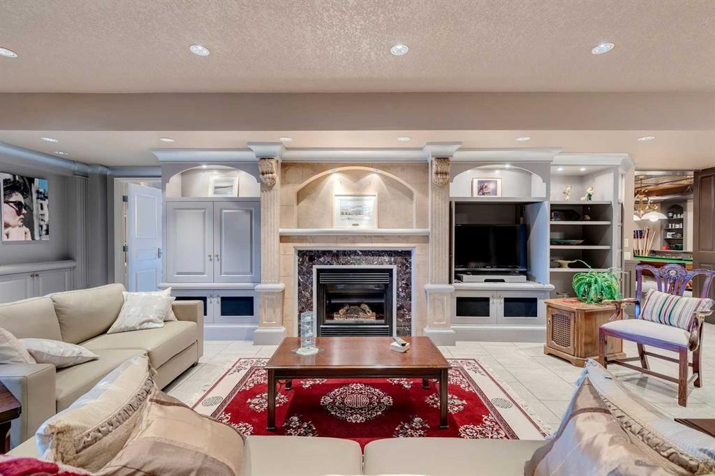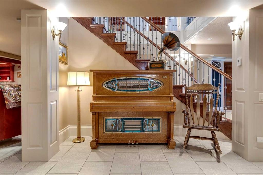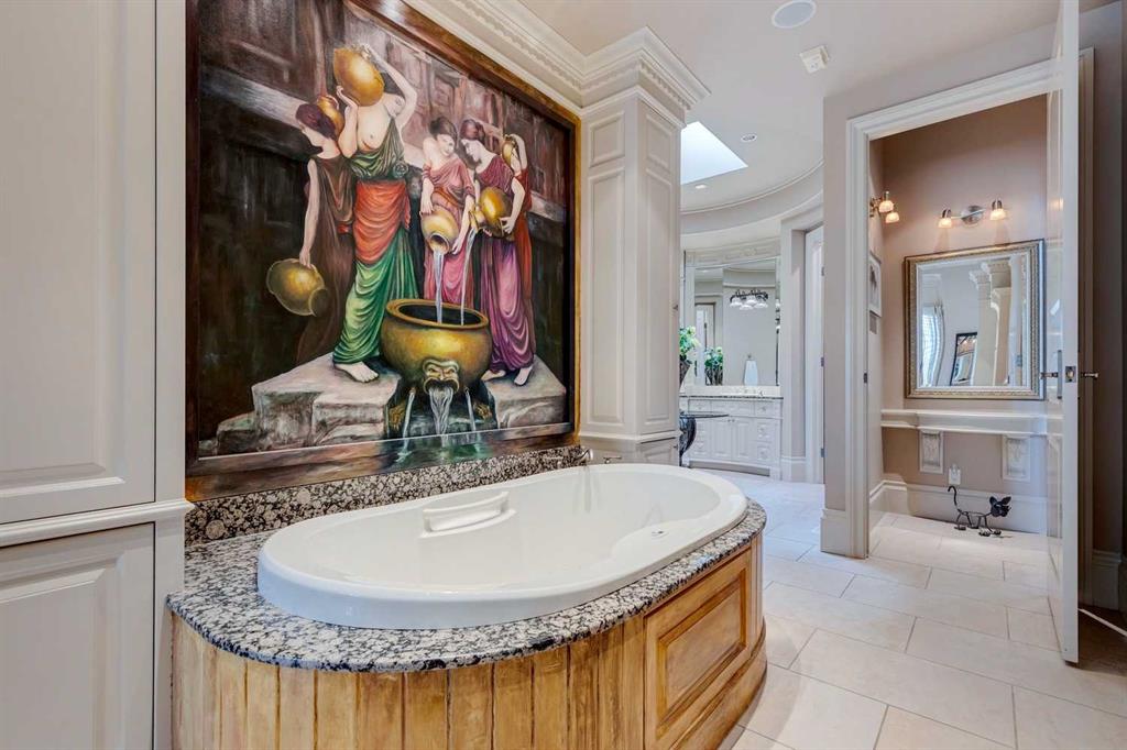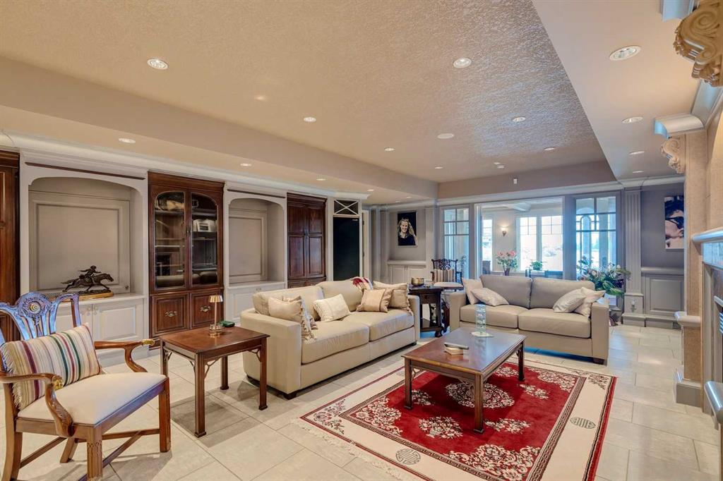 Discover one of the most iconic estate homes offered in prestigious Elbow Valley Estates—an extraordinary custom residence that combines European grandeur, architectural artistry, and exceptional craftsmanship. Perfectly positioned on a private lakefront lot, this executive walkout bungalow offers over 8000 square feet of exquisitely developed living space, designed with precision over years of thoughtful planning and executed by master artisans. From the moment you enter the grand foyer with its coffered and barrel-vaulted ceilings, it’s clear this is a home unlike any other. The main level features a sun-drenched great room with a double-sided fireplace and expansive windows framing unobstructed lake views. The heart of the home is the richly appointed ‘French Manor’ inspired kitchen—equipped for grand-scale entertaining with granite countertops, top-tier appliances including a Sub-Zero refrigerator, gas range with pot filler, two dishwashers, and a walk-in pantry. A cozy breakfast nook with fireplace and access to the expansive upper deck provides the perfect spot for morning coffee overlooking the water (with handicap access). An elegant formal dining room with custom glass cabinetry, a fully paneled library/office with fireplace, and a large laundry/sewing/hobby room complete the main level. A reverse osmosis water system is conveniently located in the craft room. The luxurious primary bedroom is a private sanctuary, featuring a vaulted sleeping area, two-way fireplace, and a spa-inspired circular ensuite with bubbling soaker tub, walk-in shower, dual vanities, and a generous dressing room with built-ins. The master bedroom also offers deck access to enjoy tranquil lake views. A versatile loft functions as a full office or creative workspace, complete with multiple workstations—ideal for today’s remote professional or growing family. The lower level is designed for recreation and relaxation, boasting an authentic English-style pub with a full wet bar, games room, media/theatre room, and three additional spacious bedrooms—each with their own private ensuite and walk-in closet. Three solariums enhance the lower level, offering a fully enclosed hot tub retreat, home gym, and peaceful sitting room, all flooded with natural light. This remarkable residence is equipped with countless thoughtful upgrades, including two newer air conditioning units, newer hot water tank and sump pump, new sinks and hardware in the craft room and kitchen . The property also features a recently serviced irrigation system. Designed for effortless living, this home includes hydronic in-floor heating on all levels, a dramatic central staircase, private elevator, and a heated triple garage. Every detail reflects unparalleled quality and meticulous attention throughout. Outdoor living is equally exceptional, with sweeping views of the lake and beautifully landscaped grounds—an entertainer’s dream and a private oasis.