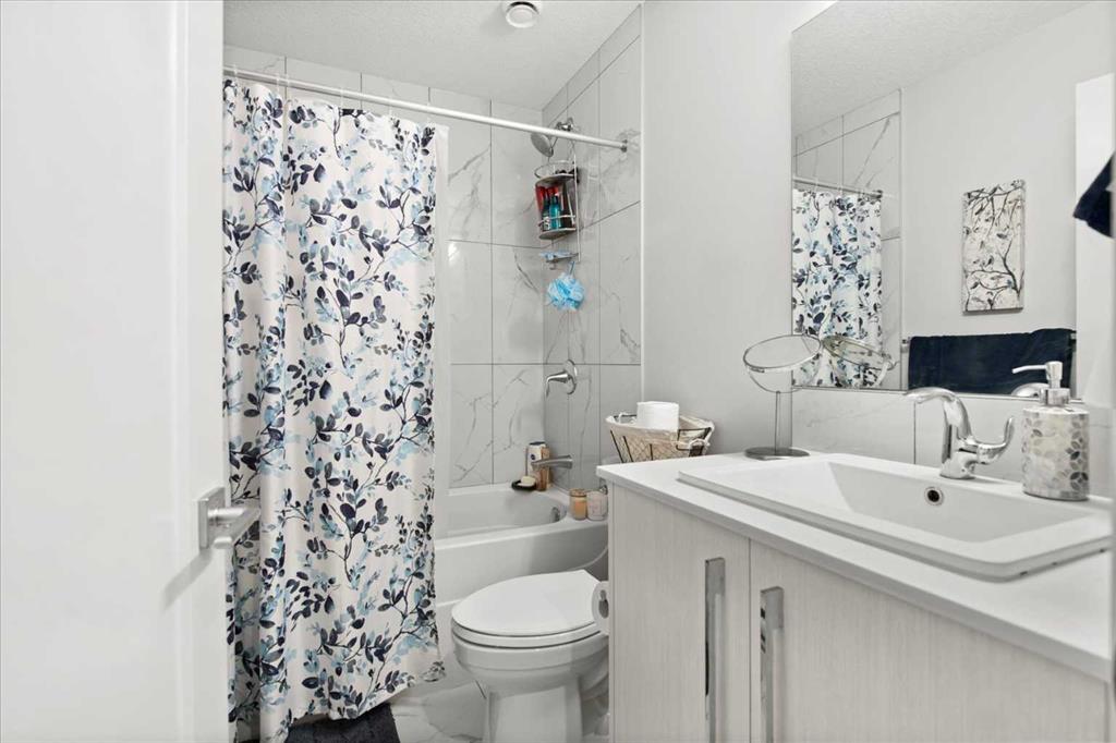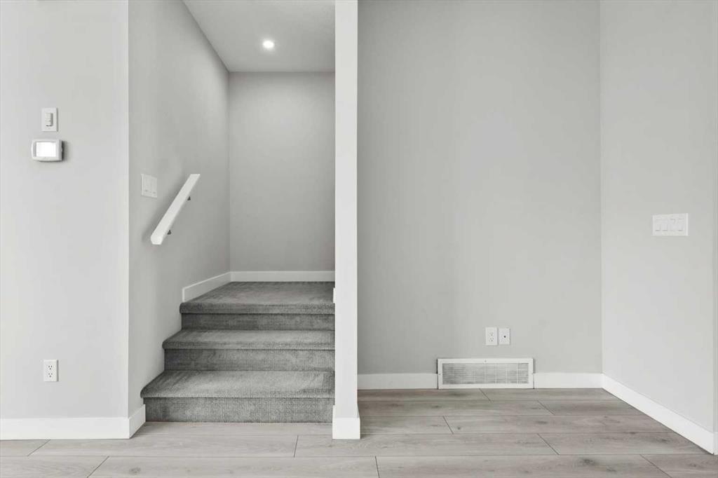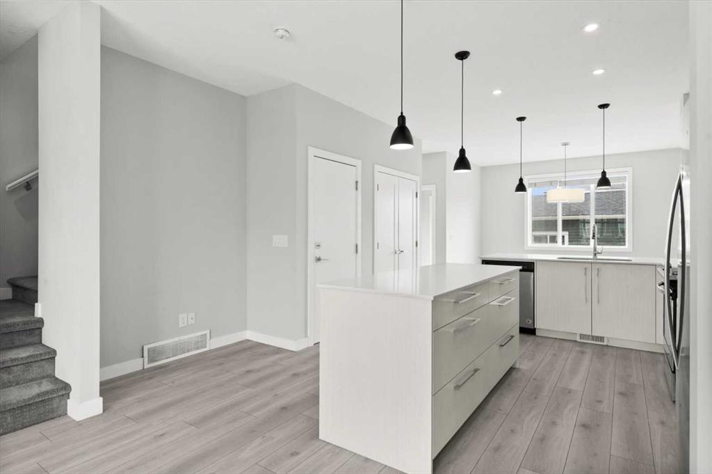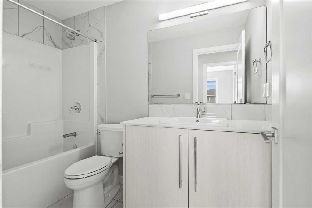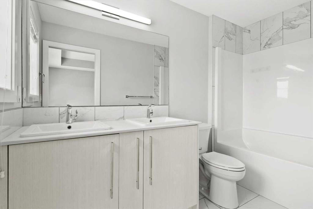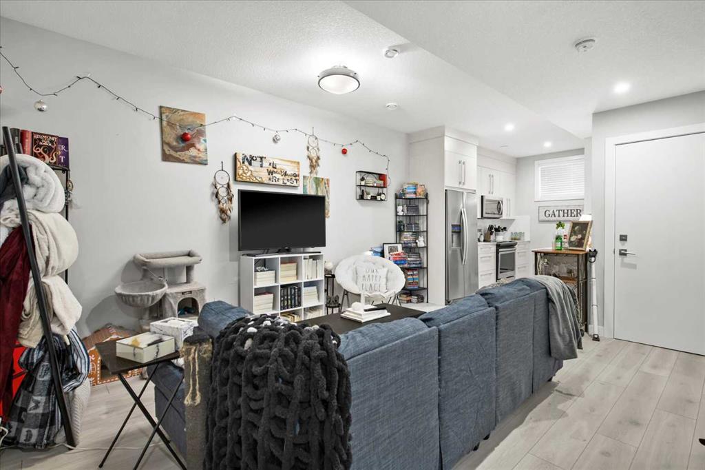 Welcome to this beautifully designed half-duplex with a legal secondary suite, ideally located in the growing northeast community of Redstone. The main level features an inviting open-concept layout with a bright living area, dedicated dining space, and a modern kitchen complete with a central island, quartz countertops, stainless steel appliances, a gas range, and a pantry. The main floor space is well-suited for everyday living as well as entertaining. Step outside to enjoy the beautiful rear deck, offering a great outdoor space for relaxing or hosting. Upstairs, you’ll find three well-proportioned bedrooms, including a comfortable primary retreat featuring a walk-in closet and a 4-piece ensuite with dual vanity. A second full bathroom, convenient upper-floor laundry, and a functional desk nook provide flexibility for working from home or staying organized. The legal one-bedroom basement suite includes its own kitchen, living room, 4-piece bathroom, and in-suite laundry, offering an excellent opportunity for supplemental rental income or space for extended family. A double detached garage adds everyday convenience, while the location offers quick access to Stoney Trail, Metis Trail, parks, pathways, and nearby amenities. A fantastic opportunity for homeowners and investors alike in a thriving Calgary community.