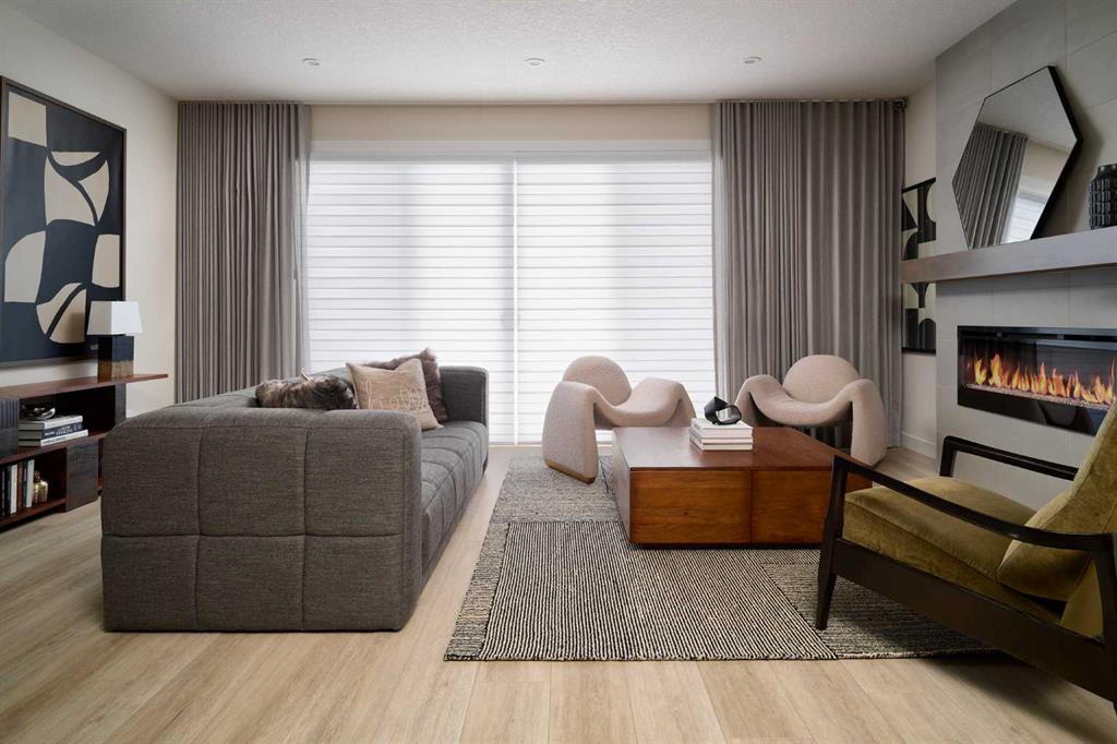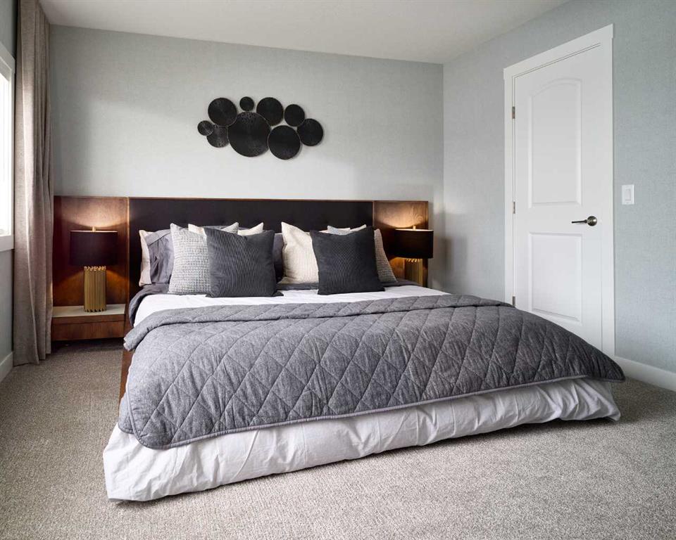 Welcome to the brand-new Carlisle II by Brookfield Residential in the sought-after community of Rockland Park. This thoughtfully designed home offers 3 bedrooms, 2.5 bathrooms, two spacious living areas, and a versatile flex room. At the front of the home, a bright flex space provides the perfect setting for a home office, playroom, or quiet reading area. The main level features a modern open-concept layout, with a central kitchen that overlooks the great room and dining area. The kitchen is equipped with stainless steel appliances, including a chimney-style hood fan and built-in microwave, along with a generous corner pantry for added storage. Upstairs, a large central bonus room creates an ideal separation between the primary suite and the secondary bedrooms, making it a perfect space for a media or family room. The spacious primary retreat includes a walk-in closet and a well-appointed ensuite with a tiled shower. Two additional bedrooms, a full 4-piece bathroom, and a convenient upper-level laundry room complete the second floor. The basement is unfinished but features 9-foot ceilings, offering excellent potential for future development. Additional highlights include a gas line rough-in for a range, a BBQ gas line at the rear of the home, and barn doors for the flex room. The backyard is ready for your personal touch and includes a double parking pad. This brand-new home comes complete with full builder warranty and Alberta New Home Warranty coverage.