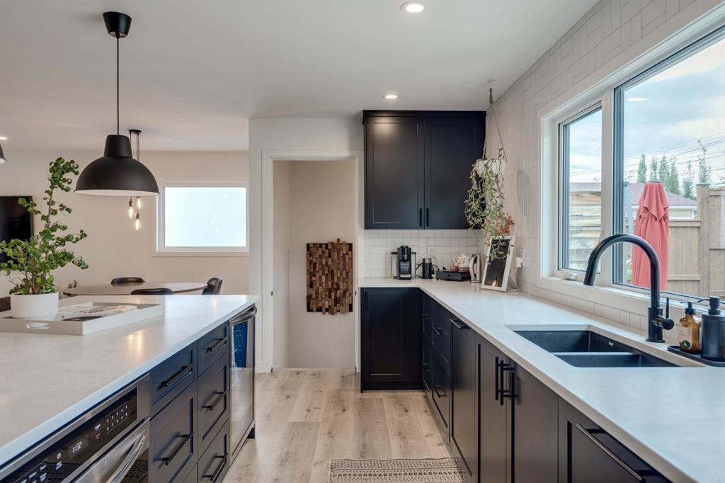 **OPEN HOUSE NOV.30TH FROM 2-4PM** Welcome to one of Maple Ridge’s most desirable pockets, where active lifestyle meets bespoke luxury. This STUNNING, fully renovated bungalow is an entertainer’s dream, perfectly situated steps from Calgary’s top city-owned golf course and a large community green space. Enjoy unparalleled year-round recreation, from summer golf and winter sledding to ski-in/ski-out cross-country skiing right outside your door. Driving up, the home’s captivating curb appeal is instantly noticeable. The charming exterior features upgraded triple pane windows, defined by tasteful black trim, contrasting beautifully against the white stucco cladding and decorative archways. Step inside to be greeted by seamless front-to-back sight lines that flood the open-concept living space with maximum natural light. The heart of the home is the meticulously crafted gourmet kitchen, maximizing both functionality and style. It flows seamlessly through the spacious dining area, the manicured backyard, and the charming living room – anchored by two beautiful south facing windows. The primary suite offers a true sanctuary with a generous walk-in closet and a spa-inspired 4-piece ensuite featuring a sleek, curb-less shower. The main level is completed by two additional well-sized bedrooms, a modern 3-piece bathroom with ample storage, and a practical office nook. You’ll continue to be impressed by the fully developed basement. It hosts a massive wet bar that could also function as a second full kitchen (if desired), equipped with a sink, full-sized fridge, dishwasher, stove top, and microwave hood fan, plus an island with seating. The basement’s open floor plan is ideal for a media room, play area, or multi-purpose use. Two large additional bedrooms and a 3-piece bathroom complete this versatile living space. The outside presents a professionally landscaped backyard, maximized for multiple uses, including a poured concrete sitting area, a fire-pit zone, and grass space. It also provides secure trailer storage via the paved alley. The front detached garage is a mechanic or hobbyist’s dream, measuring a large 22’ x 23’, drywalled, insulated, and equipped with a sub-panel and 220V plugs. Complete with unmatched efficiency and peace of mind with updated hvac, electrical, plumbing, roofing, insulation, and so much more! Located on a quiet street with little to no traffic, this home provides a safe, mature neighborhood to call your own. **Be sure to view the full detailed UPGRADE LIST and 3D VIRTUAL OPEN HOUSE TOUR for a better look**