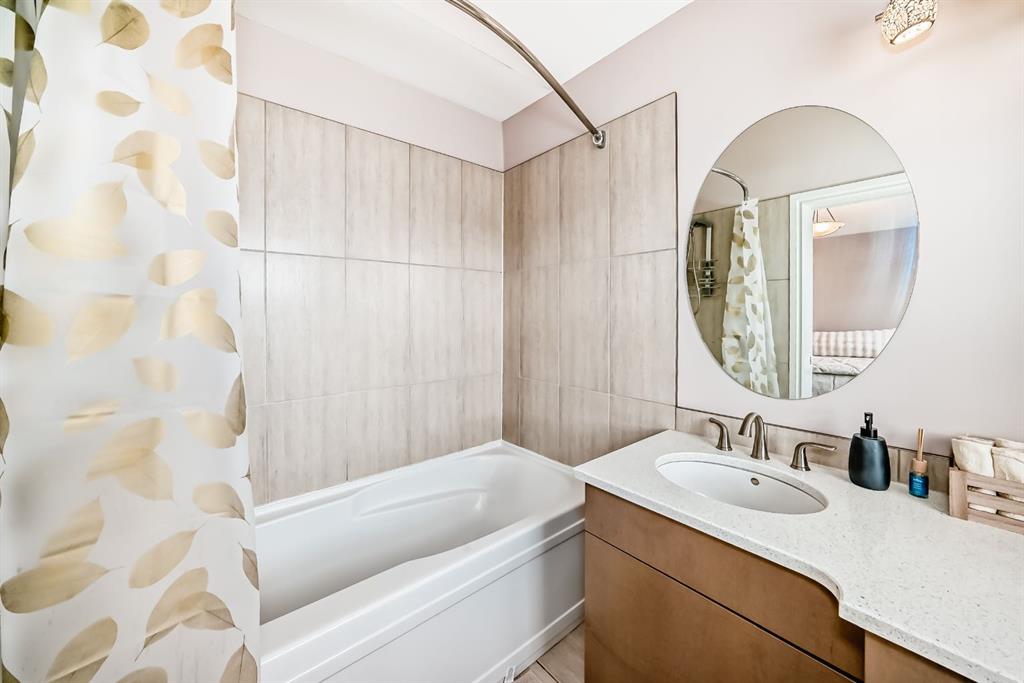 Upstairs, the spacious primary bedroom includes a walk-in closet and a luxurious 5-piece ensuite with a soaker tub, dual sinks, and quartz countertops. Two additional well-sized bedrooms, a full 4-piece bath, and a convenient laundry room complete the upper level.