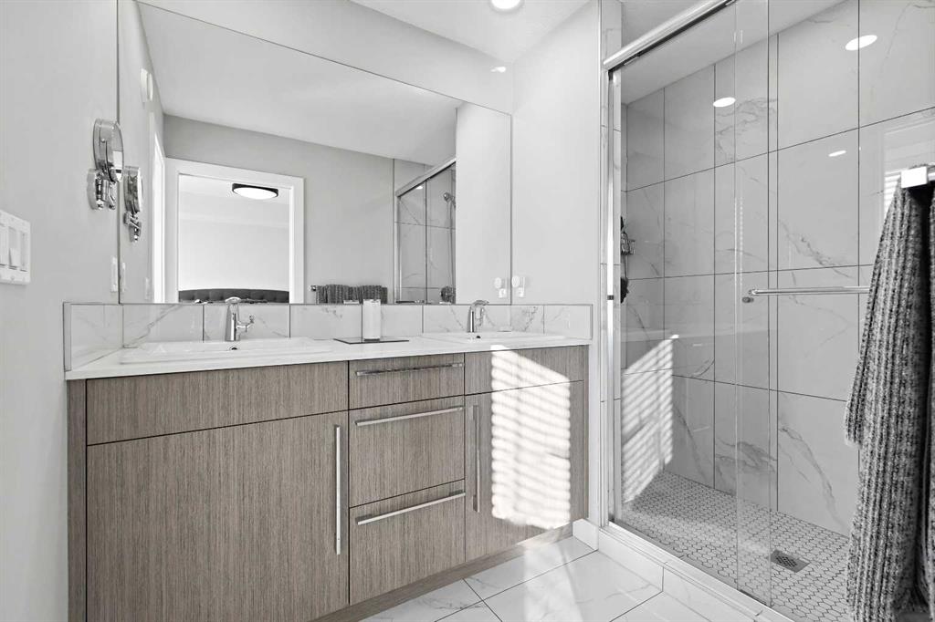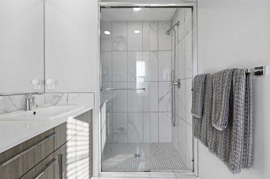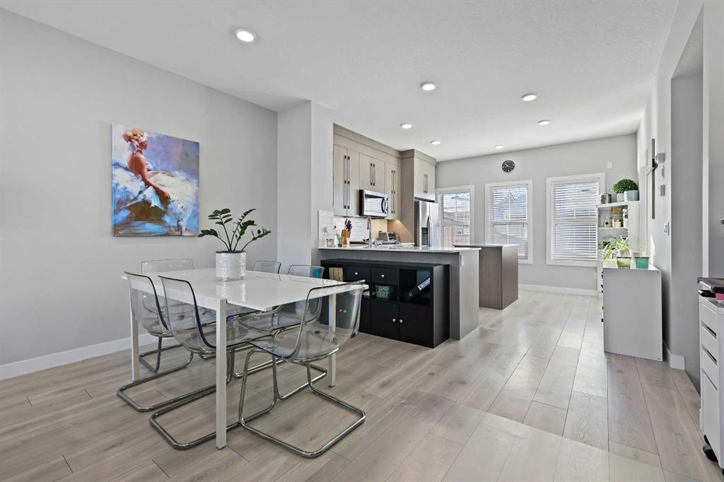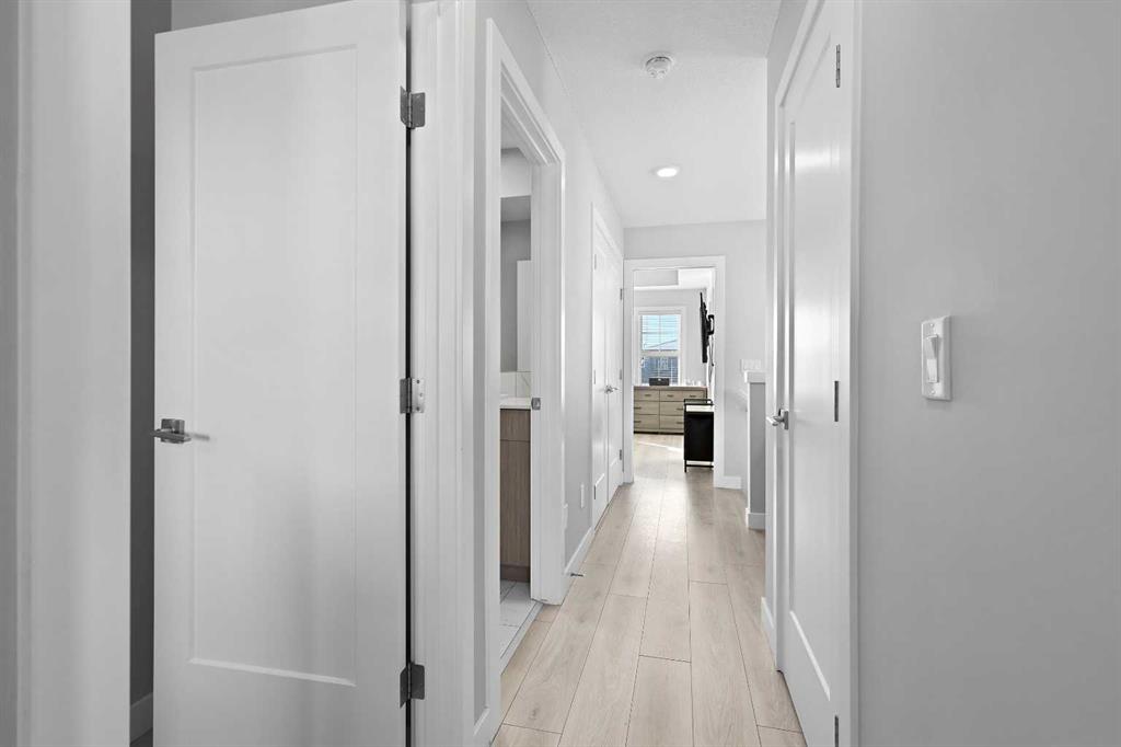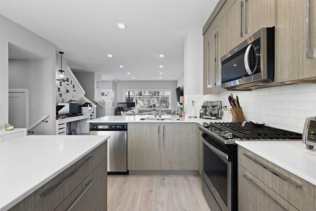 BEAUTIFUL OPEN FLOOR PLAN | CORNER LOT | TONS OF NATURAL LIGHT ALL DAY!! This exquisite town house encompasses a modern palette with fabulous finishes and large living spaces perfectly suited for a family with children, empty nesters or a professional working from home! It features a LARGE ENTRY WAY flowing into your main living area featuring LARGE WINDOWS, HIGH CEILING and lots of room for furnishing in style! Enjoy cooking and entertaining in the well equipped kitchen boasting a GAS RANGE, WORKING ISLAND, AMPLE QUARTZ COUNTERS and STAINLESS STEEL APPLIANCES! Tall to the ceiling Thermofoil wood cabinets ( resist fading) with modern linear hardware add to the beauty of clean lines and ample storage capability while a CENTRAL OPEN DINING ROOM is the perfect hub for casual or formal dinners that easily seats 8-10 persons comfortably! The main floor gleams all day long in natural sunlight that beams through numerous windows front and back, easy to keep an eye on the kids playing in the fully fenced backyard while creating in the kitchen. The extra wide main level floor plan also allows for a SPACIOUS WORK AREA where business can be carried out in the privacy and comfort of your own home! The HALF BATH is conveniently tucked away for privacy. Upstairs is a comfortable and roomy place to unwind featuring a LUXURIOUS PRIMARY BEDROOM spacious enough for a king sized bed and side tables, beautiful large windows, sizeable walk in closet and fabulous 4 PIECE ENSUITE with DUAL VANITIES & HUGE GLASS & TILE SHOWER! The UPPER HALL LAUNDRY is convenient and serves as a great work area for folding and ironing…not just a tight closet housing a washer and dryer! Completing this floor are 2 ADDITIONAL LARGE BEDROOMS each encapsulated in natural sunlight and sizeable enough for bigger furniture! The 4 PIECE BATH is conveniently located right beside for easy preparation before bed and early mornings! The lower level basement is wide open for your creative development and offers ample space for any additional lifestyle elements. This beautiful home has so much to offer including WIDE PLANK LAMINATE FLOORS | NEWLY PAINTED THROUGHOUT | NEW ROOF ON HOUSE AND GARAGE (2025) | NEW SIDING (2025) | NEW EAVES TROUGHS (2025) | NEW GUTTERS (2025) | DOUBLE DETACHED GARAGE! Your children can easily walk past the back yard to the park located just steps away and the amenities that Carrington offers are second to none and escapes out of the city or venturing downtown and further are super easy with main routes such as Stoney Trail and Deerfoot Trail only minutes away! Come take a look…HOME IS HERE!