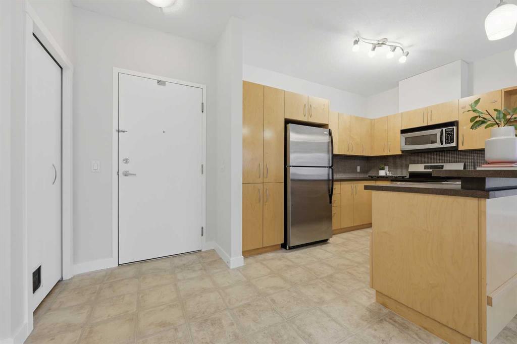 *OPEN HOUSE SATURDAY, JAN 24, 12:00 – 2:00 PM* Welcome to this bright and spacious 2 bedroom, 2 bathroom ground-floor unit in an unbeatable location. Offering 816 square feet of well-designed living space, the home features a smart split-bedroom layout—placing bedrooms on opposite sides of the unit for privacy, making it perfect for roommates, guests, or families. Step directly onto your private patio with a gas hookup, overlooking lush green space and a walking path—an ideal setup for dog owners or anyone who appreciates easy outdoor access. Inside, the home is truly move-in ready featuring professionally-installed, brand new shower fixtures, a fresh coat of paint throughout and brand-new stainless steel dishwasher and electric range. The sun-filled living area with a cozy gas fireplace is designed for entertaining with a dedicated dining area and a breakfast bar for casual meals with friends and family. You are well positioned just steps from the Westside Recreation Centre, home to swimming pools, skating rinks, a fitness centre, and an indoor track. The location is incredibly walkable, situated near 69th St LRT Station for an easy commute, Ernest Manning High School, Ambrose College and Springborough Professional Centre featuring local favourites like Waves Coffee, an award-winning yoga studio, and diverse dining options. Rounding out this exceptional package is a heated underground parking stall conveniently located near the elevator, along with a separate storage locker, bicycle storage, access to an underground car wash, and ample visitor parking.Â
