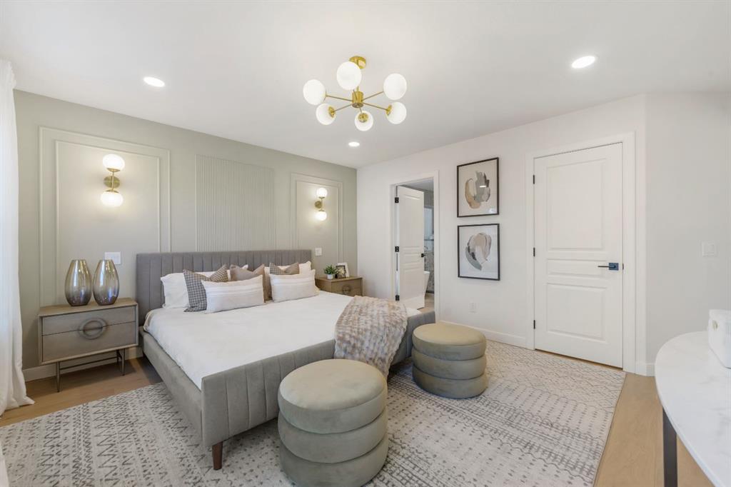The lower level was intentionally designed for generational living, offering flexible media and living space with a multi-sided fireplace, terrazzo tile flooring, and limewashed feature walls. A fully equipped wet and dry bar includes extensive counter space, a dishwasher, and a double-door wine fridge, making it ideal for extended family, guests, or entertaining. A full bathroom with a glass-tiled walk-in shower with a bench, enhances ease of access without compromising luxury. Layered designer lighting, integrated LED accents, and upgraded electrical systems complete the home.