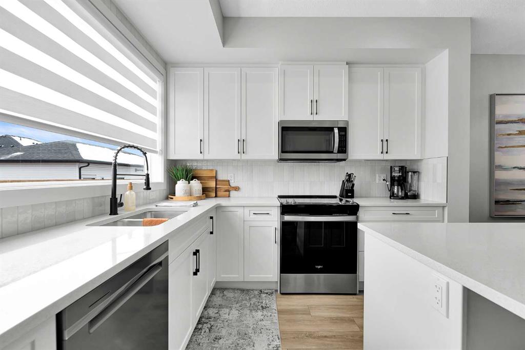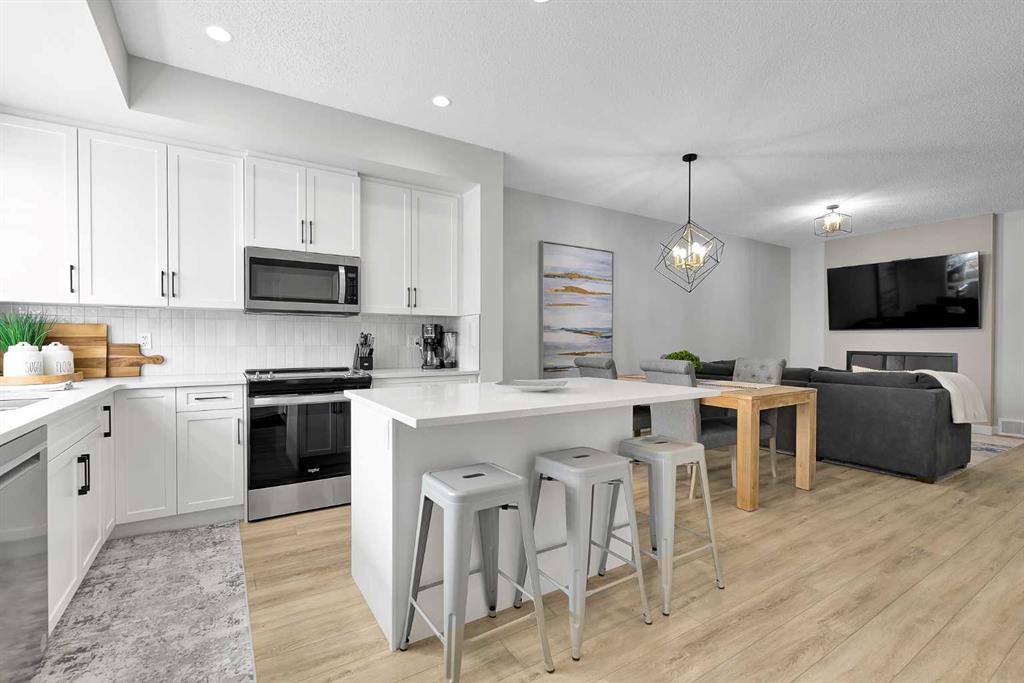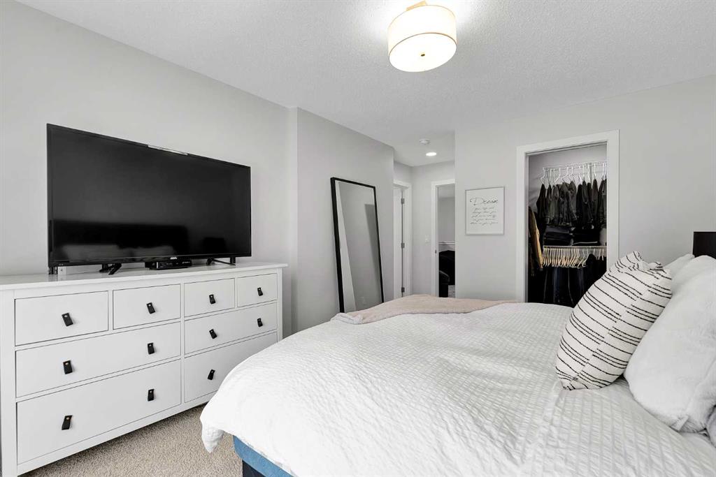 Welcome to 125 Emberside Hollow in Cochrane. Skip the GST and step into this next-to-new, move-in ready home with no added landscaping or garage build costs to worry about. Built by Cardel, this home offers generous square footage, a thoughtfully designed layout, and a separate side entrance ready for future development opportunities. The main floor features an open concept design with a spacious living and dining area that flows seamlessly into the large kitchen, complete with quartz countertops, stainless steel appliances, ample cabinetry, and a central island that serves as the true heart of the home. A rare and versatile main floor bedroom at the front of the house works perfectly as a guest room or home office, and is complemented by a full 4-piece bath. Upstairs, the larger floorplan is immediately evident. The private primary retreat offers a walk-in closet and a 4-piece ensuite, while the bonus room provides the perfect space for kids to watch TV, study, or unwind. Two additional generously sized bedrooms, another full 4-piece bath, and the convenience of upstairs laundry complete the upper level. The unfinished basement offers 9-foot ceilings and a dedicated side entrance, creating excellent potential for future development or an investor-minded upgrade. Outside, the south-facing backyard is fully landscaped and ready to enjoy, featuring an oversized rear deck that extends your living space outdoors. The recently built double detached garage is heated, insulated, and fully wired with a 70-amp panel. Located just blocks from the elementary school, tot park, and extensive bike paths, this home is ideally situated in the heart of the fast-maturing community of Fireside, with an easy 20-minute commute to Calgary. Book your private showing today.