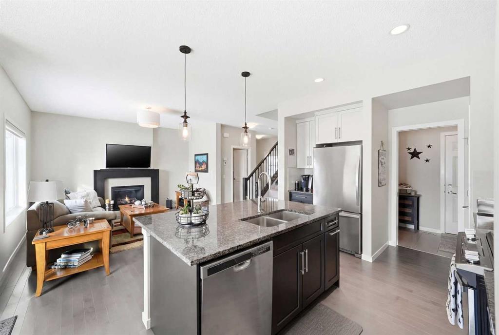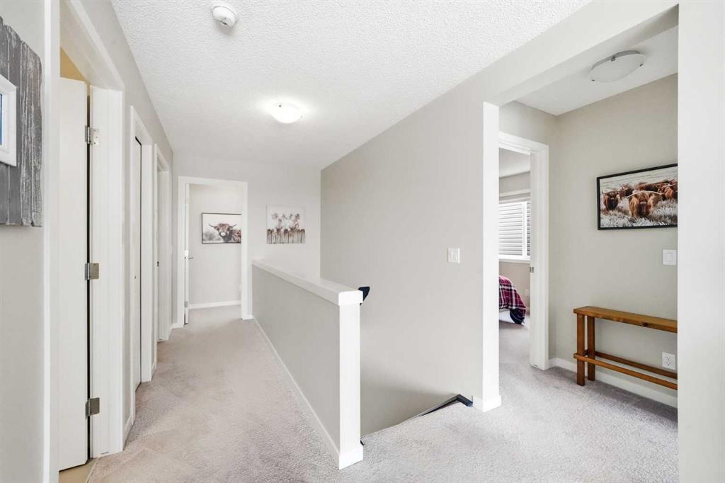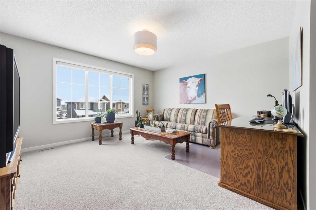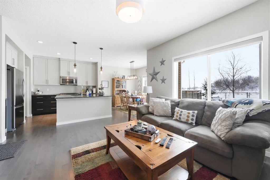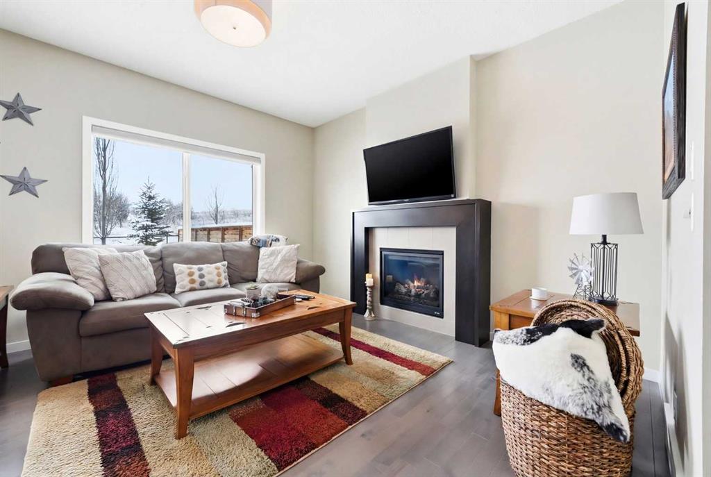 Welcome to 125 Fireside Cove, a rare duplex backing directly onto pathway and expansive greenspace in the heart of Fireside. With no rear neighbours and open views behind you, the private, beautifully landscaped backyard offers direct access to walking paths and a peaceful setting that is hard to find at this price point. Offering over 1,800 sq ft above grade, this home delivers a layout and overall size that feels closer to a detached property than a typical duplex. The bright open concept main floor features a spacious kitchen with quartz countertops, a large island, ample cabinetry, and seamless flow into the dining and living areas. The living room is anchored by a cozy fireplace and large windows that frame the greenspace views. Upstairs, this home truly stands apart with a full bonus room, a rare and highly sought after feature in duplex living. Whether you need a media room, kids’ play space, home office, or second family room, this added living area provides flexibility most duplexes simply do not offer. The upper level also includes a generous primary suite with a walk-in closet and 5-piece ensuite, two additional well sized bedrooms, a full bathroom, and convenient upper floor laundry. The unfinished basement provides over 600 sq ft of future development potential, ready to be customized to suit your needs. Backing onto pathway and greenspace, offering exceptional square footage, and featuring a true bonus room, this home delivers size, privacy, and functionality rarely available in this segment of the market. Walking distance to schools, parks, and amenities, this is an outstanding opportunity in one of Cochrane’s most desirable communities.