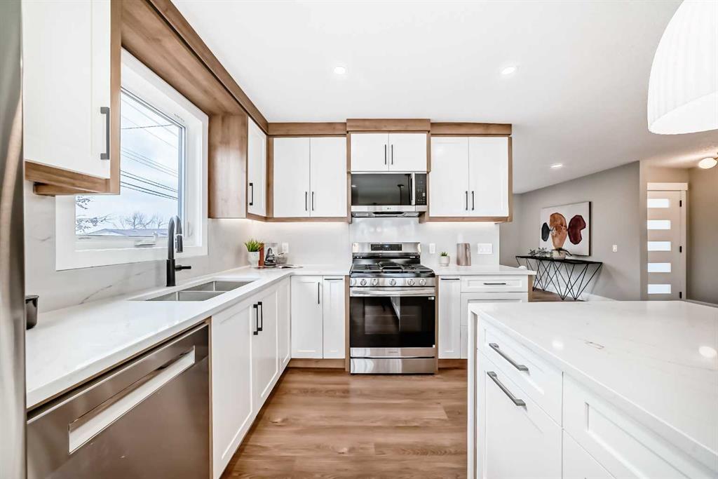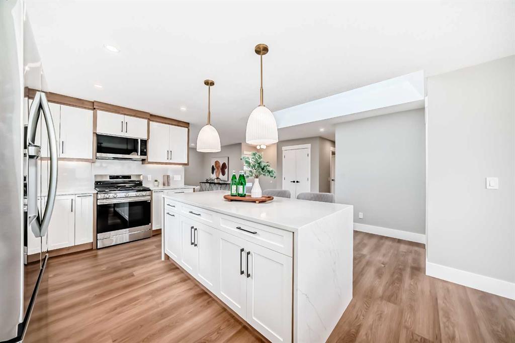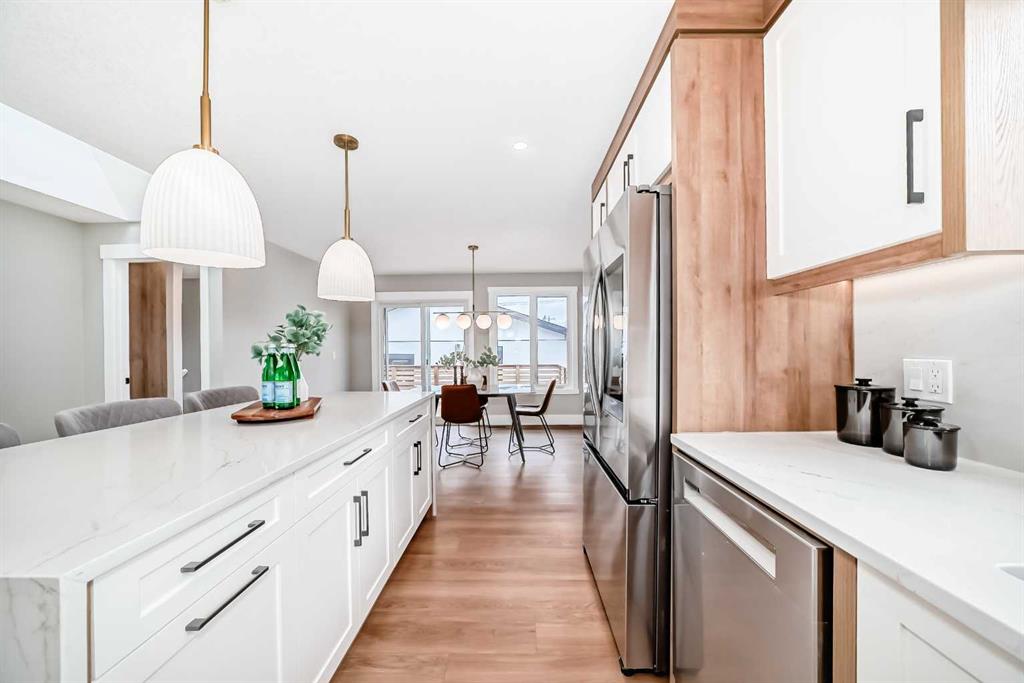 Beautifully renovated and thoughtfully designed, this 1,421 sq ft home in sought-after Lake Bonavista offers the perfect blend of style, comfort, and functionality. The bright, open-concept main floor showcases a stunning great room with a modern neutral palette, a showpiece two-tone kitchen with eat-up island, stainless steel appliances, and seamless vinyl flooring throughout. A striking feature fireplace anchors the living space, creating an inviting atmosphere ideal for both everyday living and entertaining.