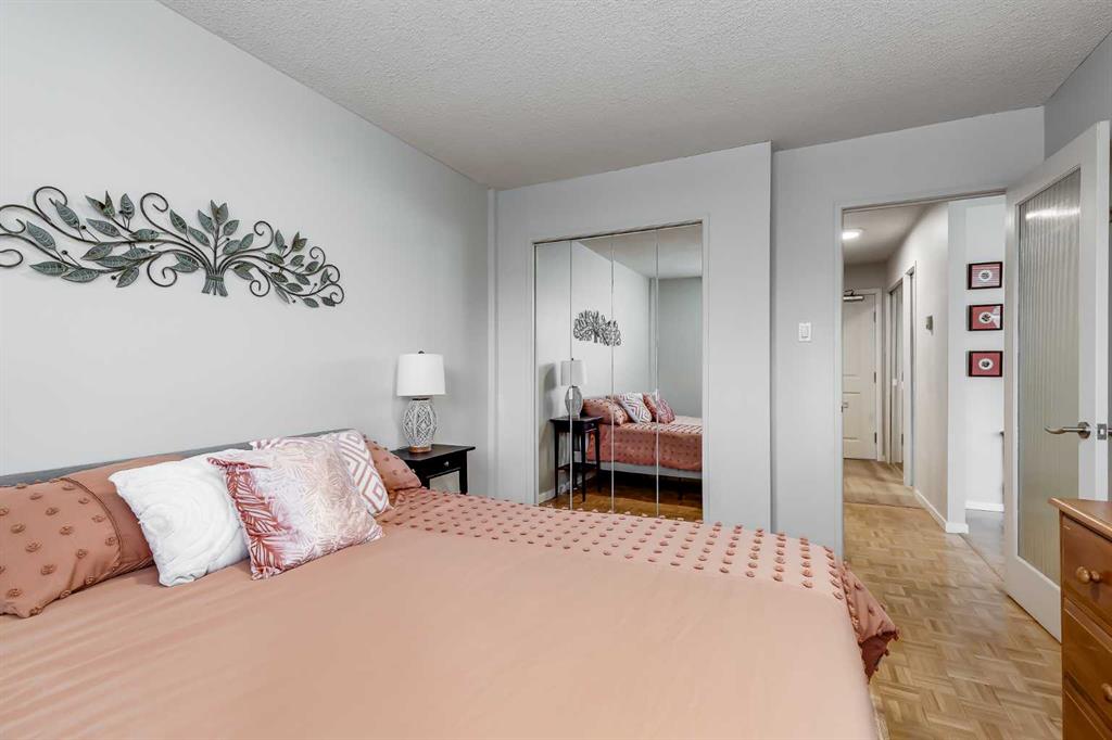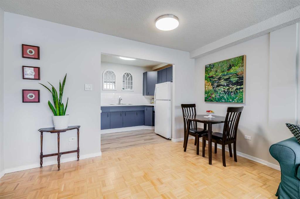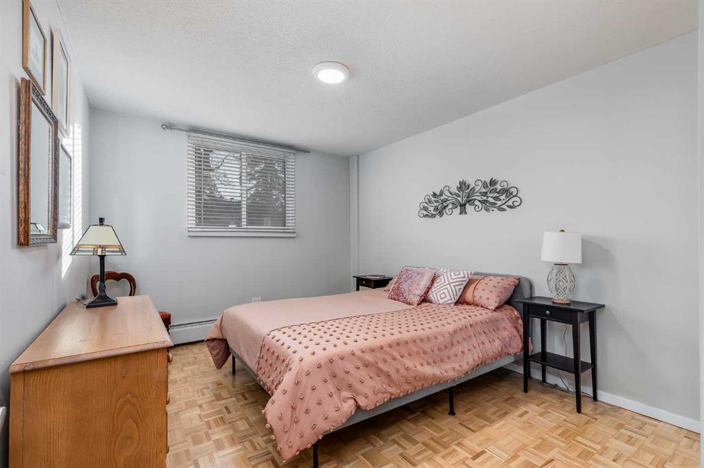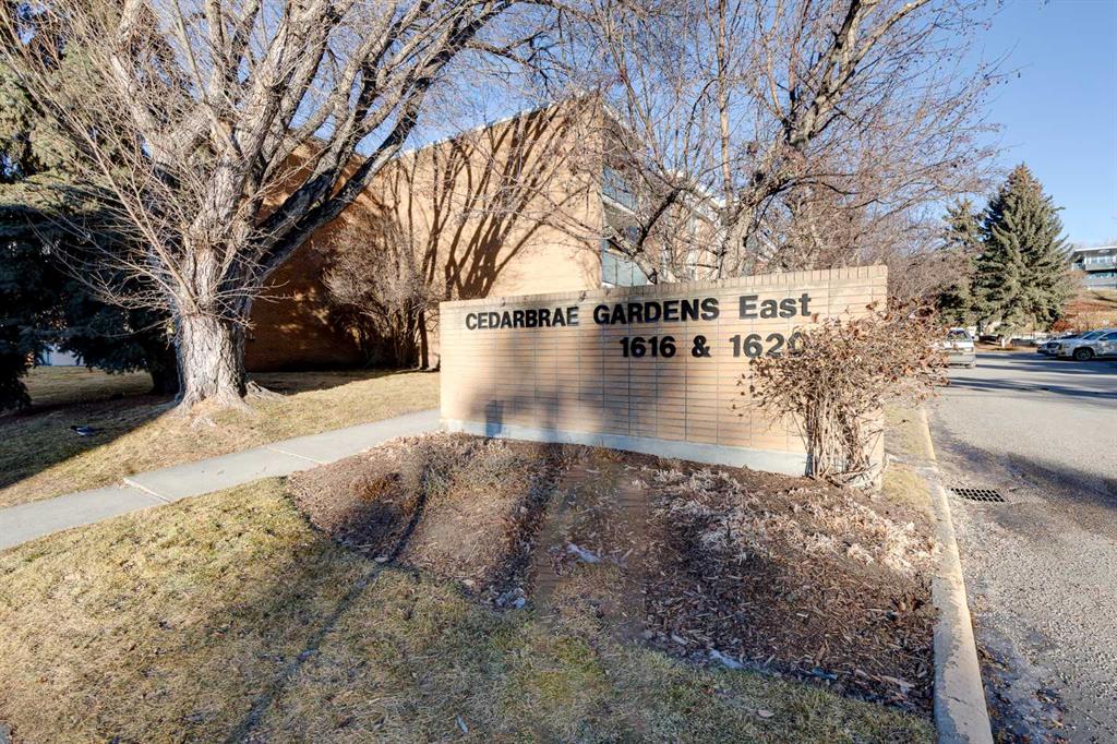 This is it!! This is your opportunity to own in the sought after and rarely listed Cedar Brae Gardens!! Once you move in, you’ll never want to leave this friendly, walkable, amenity rich neighbourhood. Located in a quiet alcove of Briar Hill/Hounsfield heights, this bright 1 bedroom, 1 bathroom unit is sure to impress. This fully updated home includes freshly refinished parquet hardwood floors, stone counters, updated kitchen, bathroom, lighting and neutral paint. Enhancing the upgrades is the natural light that floods throughout the home. This beautiful light highlights the open concept kitchen, living and dining areas that are perfect for entertaining or enjoying quietly. The kitchen is a chef’s delight with freshly painted wood cabinetry, light counters, bright lighting and plenty of counterspace and storage. From the main living area, you have quick access to your sunny, private patio to enjoy the morning sun and a fresh cup of coffee. The primary bedroom is oversized along with an ample sized closet to maximize storage. The 4 piece bathroom has been tastefully updated for years of enjoyment. All of this plus a large, in suite storage closet that can also be used as a pantry! This unit also has 1 assigned parking stall and plenty of visitor parking for your guests. The building has amenities galore including: coin laundry room, large party room with full kitchen, large games room with fireplace, bike storage, outdoor courtyard with BBQ grills and tennis courts. Low condo fees that cover almost everything including electricity!! This well managed concrete building is in a prime location and close to U of C, SAIT, Kensington, Riley Park, hospital, parks, shopping, seniors complexes and more. This unit is move-in ready, priced to sell and perfect for first time home buyers, downsizers and investors alike! Book your showing today!!