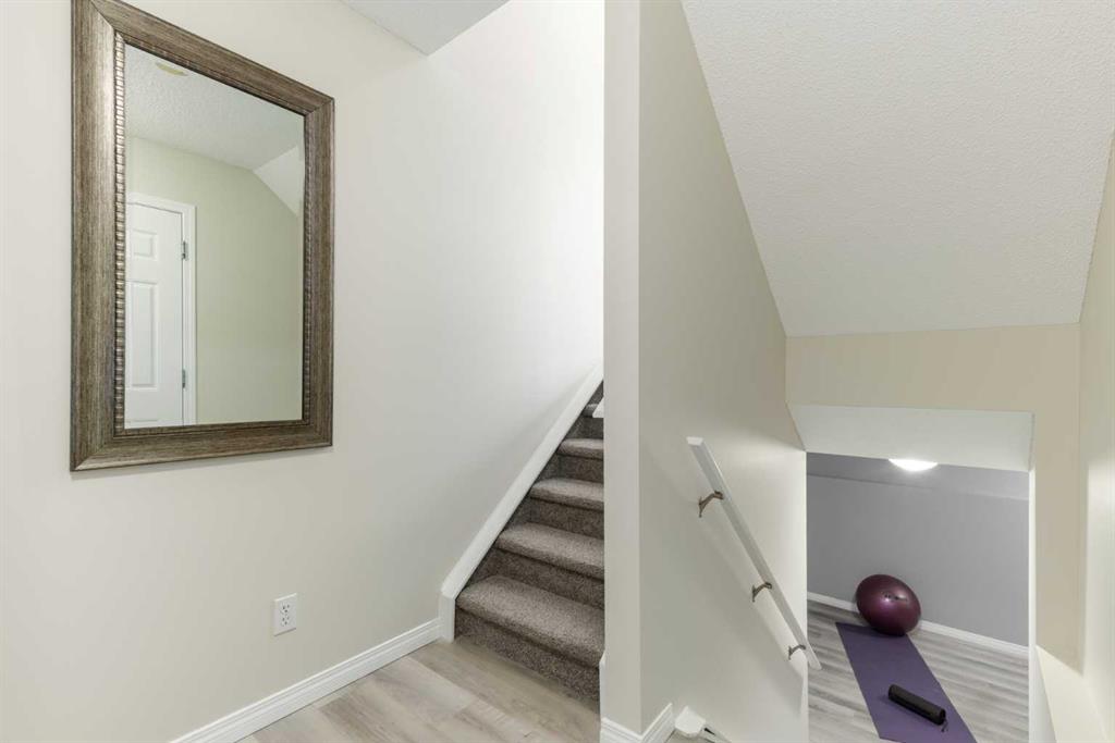 OPEN HOUSE Saturday October 25th from 1-3pm. Perfectly positioned in the heart of Evergreen, this fully developed four-level split townhome blends architectural interest with everyday livability. Designed for connection and convenience, you’re moments from Calgary’s major routes, public transit, shopping, and the serene pathways of Fish Creek Park. Inside, soaring ceilings and large windows flood the main living area with natural light, while new designer paint brings a fresh, elevated aesthetic. The generous kitchen and dining area are designed for connection – bright, open, and equipped with a new induction stove and refrigerator, perfect for hosting dinners or casual mornings at home. You’ll love the refined finishes: modernized carpet, window coverings, and wide plank flooring that lend warmth and texture to every level. Upstairs, a dual primary bedroom layout offers ultimate flexibility, with each suite complete with a full ensuite bath and walk-in closet. Downstairs, a flexible finished space adapts beautifully to your routine, whether it’s a morning workout, creative workspace, or evening unwind. Step out to your private deck with new maintenance-free decking and enjoy the calm of the interior courtyard, tucked away from the main road. A good-sized single attached garage with a new garage door adds everyday practicality and secure convenience. With effortless access to Stoney Trail and nature’s doorstep just beyond your own, this home offers an inspired balance of design, comfort, and connection.