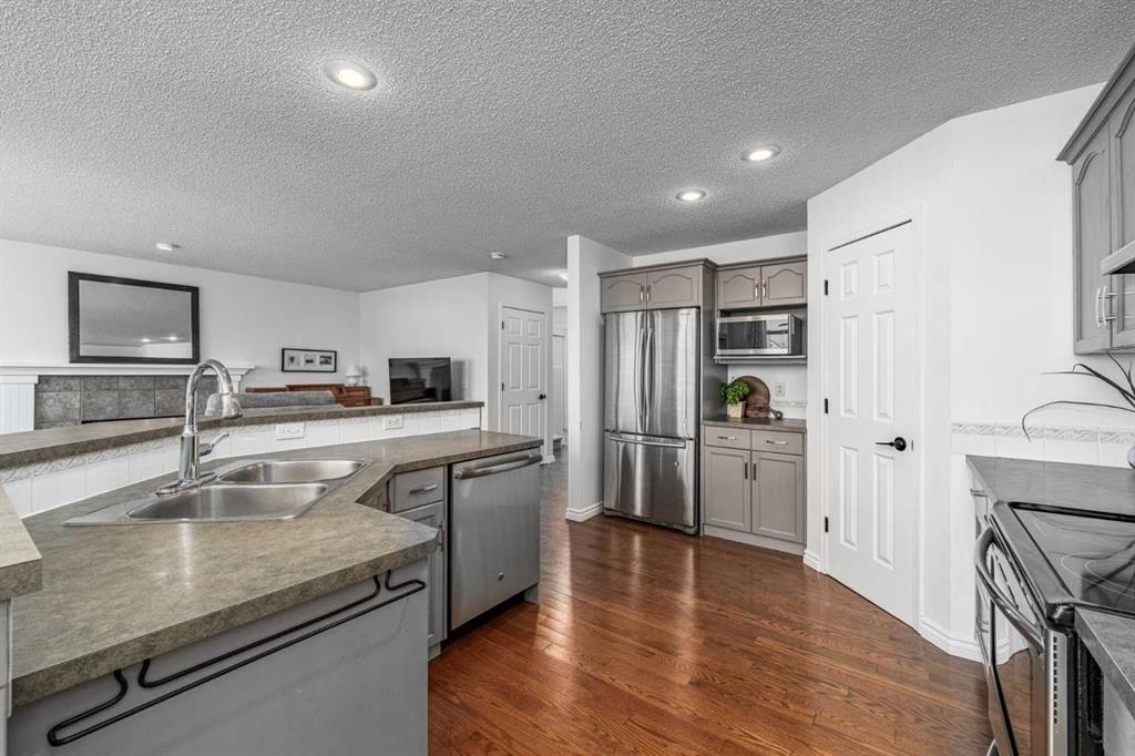 The kitchen connects seamlessly to the living and dining areas, making it perfect for both family time and entertaining. You’ll appreciate the stainless steel appliances, great workspace, and easy flow throughout the main living space. Main floor laundry and a convenient 2-piece bathroom add extra practicality to daily routines.