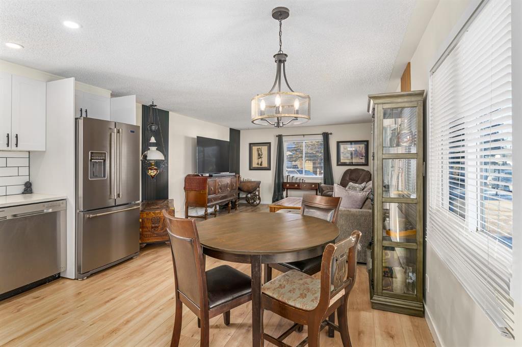 This extensively renovated home located in the desireable community of Greenwood Village offers an unparalleled blend of comfort, style & tranquility. Boasting generous living space, this open-concept home is bathed in natural light thanks to its abundant windows throughout. Recently updated laminate flooring adds a touch of sophistication, while the thoughtfully designed layout provides ample space for both relaxation and entertaining. The modern kitchen features ceiling height cabinetry, tile backsplash, quartz countertop and stainless steel appliances. The spacious dining space seamlessly flows into the bright and welcoming living room. This home offers 2 well-sized bedrooms, as well as a generous 4 piece bathroom. Bathroom features newer toilet, vanity and lighting. Other recent updates include dimable potights and tasteful ceiling lights throughout, baseboards, newer skirting (2023), newer siding (2022), newer roof vents, shingles, and eaves (2022) and vinyl windows. Exterior has a large deck as well as a new fence and new shed (2024). Greenwood Villiage is a well-managed community located in Greenbrier right next to the Calgary Farmers Market. Residents enjoy access to the community center which includes a games room. Close to Canada Olympic Park and quick access to the Trans-Canada Highway, as well as Stoney Trail. This stunning home offers a rare opportunity to own a piece of paradise at great value!