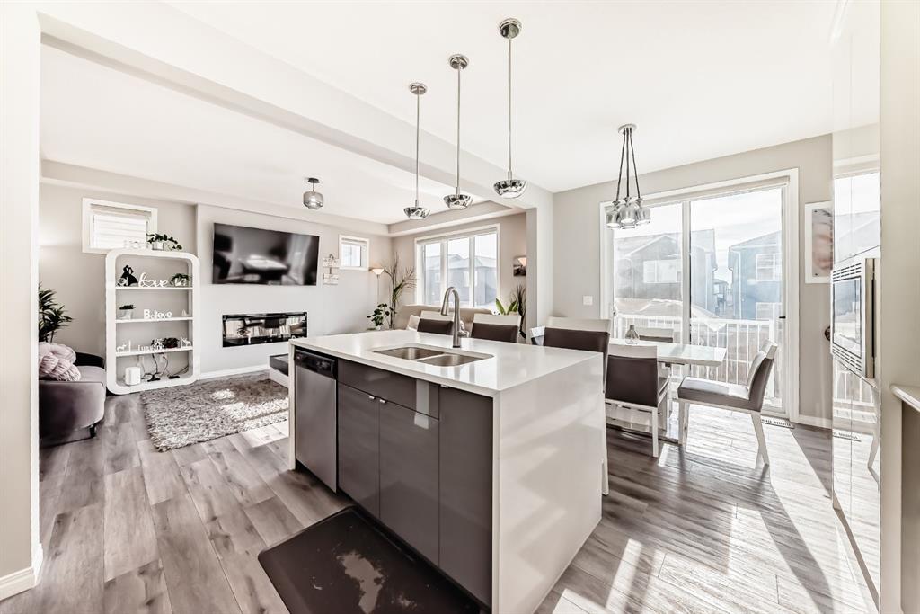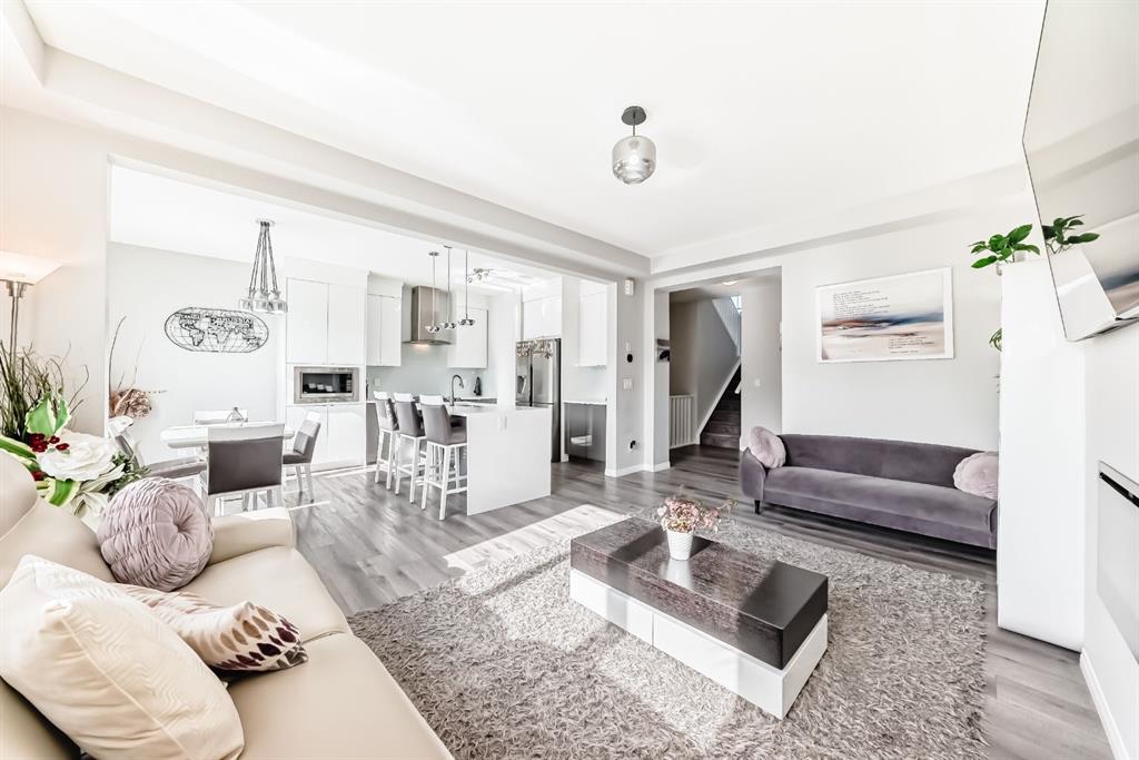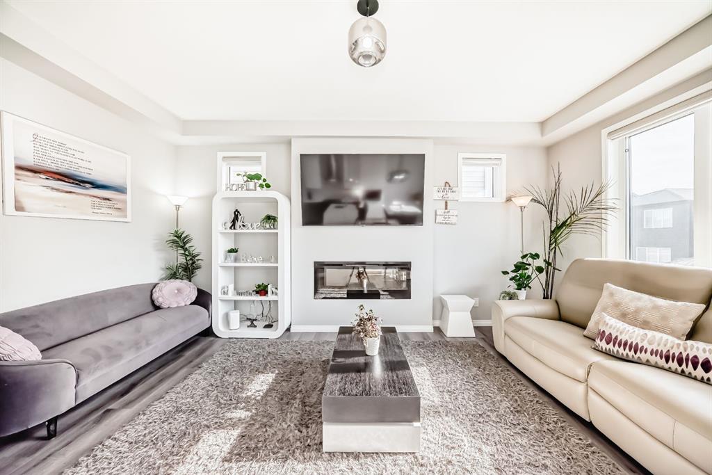 Public Remarks: Welcome to the desirable and sought after community of Carrington where this stunning and like-new, 2-storey Split level Dream home is sure to impress! Offering 3 + 1 beds, 3.5 baths, and a fully finished Legal Suite walk-up basement, this well-kept residence offers a perfect family environment! Walk up the foyer and enter the bright, open-concept main floor outfitted with beautiful wood vinyl flooring, walls painted with neutral tones that give that warm and homey vibe, and plenty of sunshine from the large windows. A fireplace, high-end light fittings around the living spaces. Central Air conditioning. The living room comes with an electric fireplace and is spacious enough to entertain a large number of guests on any occasion next to the dining area. Be inspired to cook delicious meals in the modern kitchen with gorgeous upgrades 2 tone, white and grey high gloss cabinetry adding brightness to the house accented by elegant drop pendant lighting, beautiful stainless steel kitchen appliances, and a quartz waterfall island. A garburator. Sliding doors in the dining area lead to a deck overlooking the large private fenced landscaped backyard. A 2pc powder room completes the main level. Upstairs, is a cozy great room ideal for any kind of recreational activities with the family, there’s a bonus kids’ play area attached to this loft too! As well as an access to the balcony where you can set a table and some comfortable chairs to create a perfect corner to unwind during sunny afternoons. Your private space awaits in the massive primary bedroom featuring a walk-in closet and a spa-like 5 pc ensuite (with extra large soaking tub). There are 2 more good-sized bedrooms on this floor plus a convenient upper-level laundry room with counter top and cabinets. Plenty of windows on all levels provide natural light throughout. The fully finished LEGAL basement is well designed and has a separate Walk up entrance complete with a living room and a bedroom for extra income option, and a 4 pc bathroom, it comes with its laundry, washer plus dryer. 2 extra storage areas under the stairs. There’s more space in the private landscaped yard with a deck for summer BBQs. So much space you can even set up a Gazebo Canopy perfect for hosting family and friends. Double attached garage that can house 2 cars and still has room for extra storage plus a full concrete driveway for extra parking. Located conveniently close to schools, transit, shopping, and all other amenities, this gem and rare find home provides all the elements for relaxing and comfortable living. Great value for this move-in-ready DREAM home in a terrific neighborhood! Call to book your appointment today! Listing realtor has interest in the property. * Refrigerator in Pictures is different. Brand new 2025 roof and some siding.