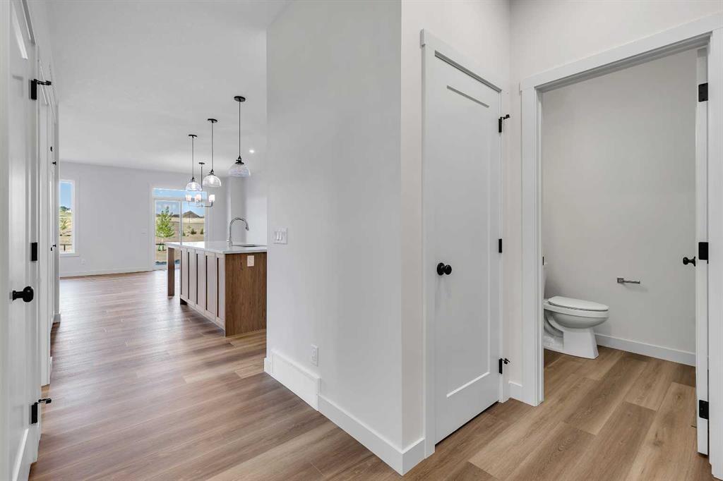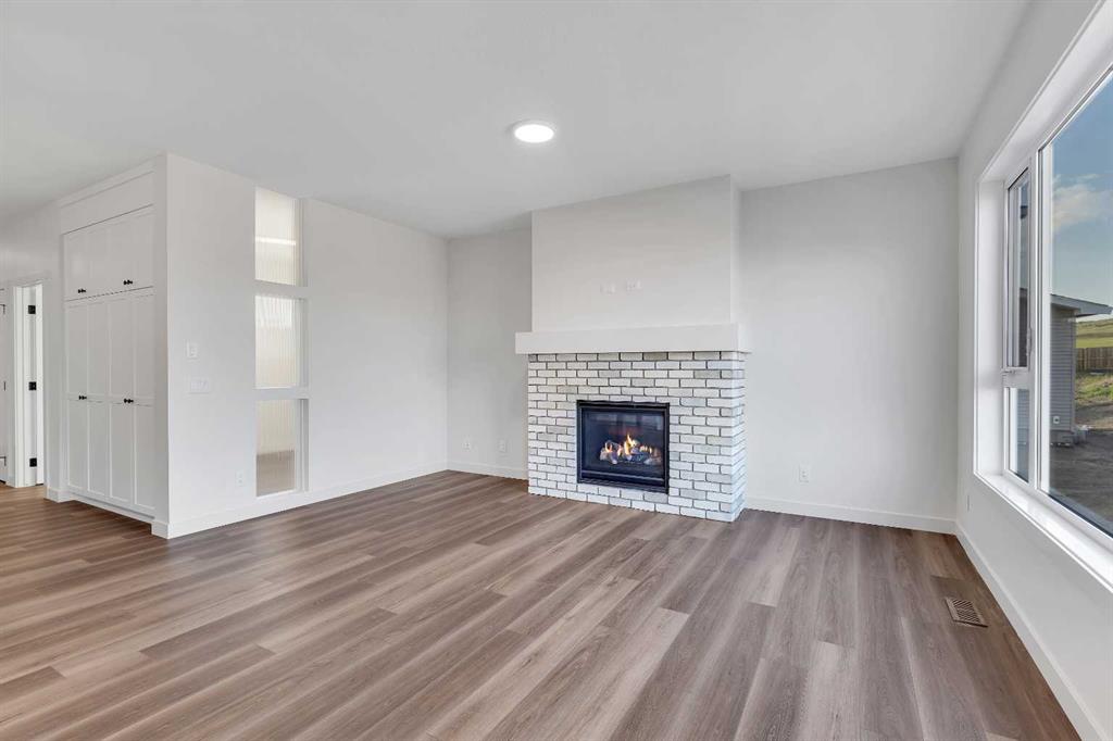 Brand new home built by Homes by Fifty Six, located in Heritage Hills of Cochrane. This home is loaded with upgrades & features which include: quartz, LVP, Tile, stone facing gas Fireplace, oversized garage, 9′ ceilings main & lower, walk through pantry, lots of windows allowing loads of natural lighting, open to below foyer & much more. The main floor features a den, 2c bath, spacious great room with fireplace & a good size kitchen that offers an island, walk through pantry & breakfast nook that has access to the yard that over looks the greenspace. The upper floor features a large bonus room, 4pc bath, laundry & 3 good size bedrooms. The primary bedroom offers a walk in closet & full ensuite. The lower level is awaiting your ideas. Backing onto future school site/green space. Heritage Hills offers a blend of small-town charm and modern amenities. Residents enjoy access to parks, green spaces, and local conveniences such as Mountain Ridge Plaza, which hosts services like a pharmacy, fitness center, and dining options. The community is served by designated schools including Glenbow Elementary, Mitford School, and Bow Valley High School. With its tranquil atmosphere and proximity to both Calgary and outdoor recreational areas, Heritage Hills is an attractive choice for families and individuals seeking a balanced lifestyle. Fifty6 is devoted to the craft of legendary home-building. With a heritage dating back to 1956, building on the past and bringing a modern perspective to homebuilding and design. Click on link to view 3D walkthrough.