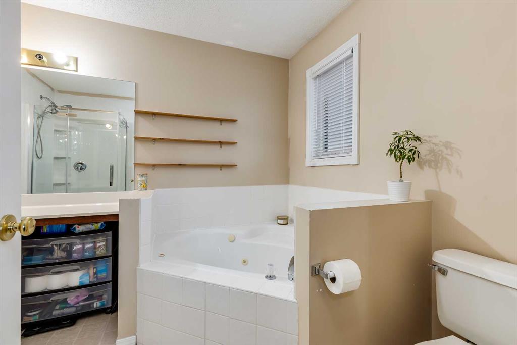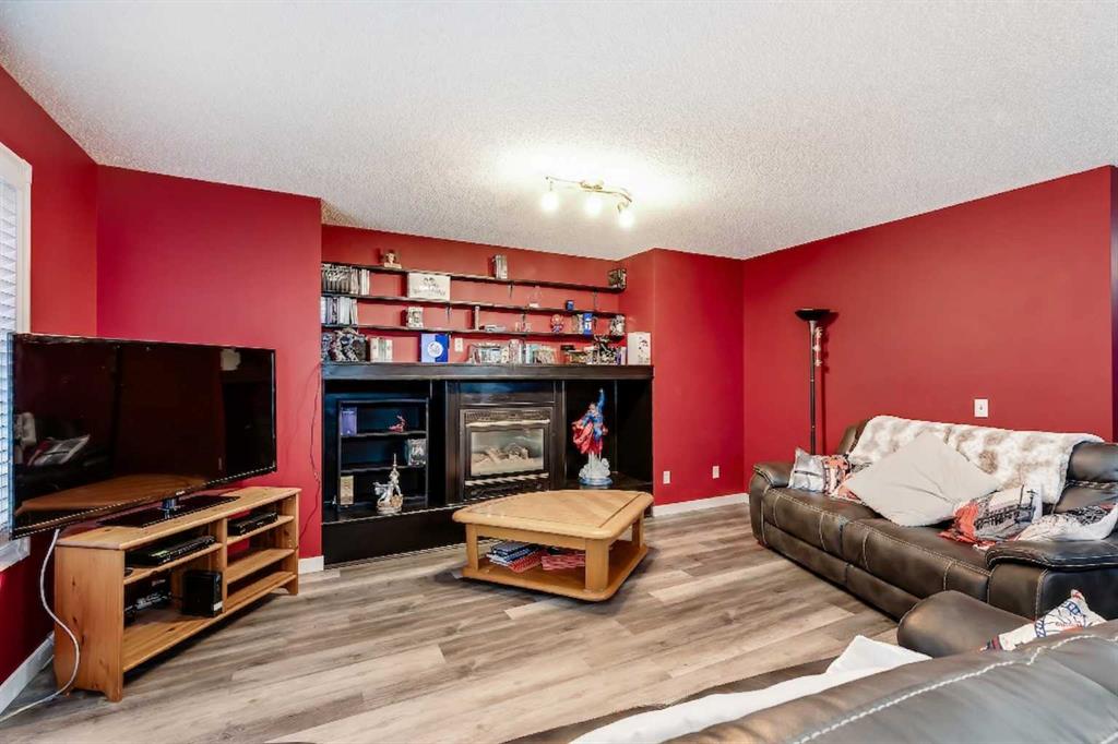 BRAND NEW TRIPLE PANE WINDOWS in this 5 Bedroom home in the Golf Community of Woodside in Airdrie. Tucked in a quiet street surrounded by the golf course, you’ll appreciate the slower pace of this mature neighbourhood. As you enter you’ll come to the oversized entrance way. Right away you’ll notice the new vinyl plank flooring. Moving through the main level you’ll come to the large living room, featuring a gas fireplace and built in shelving. The dining area is large enough for your family table, and the kitchen feature lots of cabinets, updated backsplash & countertops, and a large L-Shaped Island. Moving upstairs, you’ll find 4 BEDROOM UPSTAIRS, plus a bonus area as well. The master bedroom features a 4-Piece En-Suite with a New Oversized Shower & separate soaker tub, and a MASSIVE WALK-IN CLOSET! The 3 other bedrooms up here are all good sized for kids, office space, or guest room. Moving downstairs to the fully finished basement you’ll come to a great sized family room, and a large basement bedroom featuring another Huge Walk-In Closet, and a 3-Piece En-Suite. Don’t forget the NEW FURNACE down here as well. Moving out to the SOUTH FACING BACKYARD you’ll first notice the large mature trees, providing plenty of summertime privacy. The wood deck lowers onto a stone patio, with lots of grass space for kids or dogs completing the rest of the yard. Full sun back here, perfect for entertaining family and friends! Book your showing today!