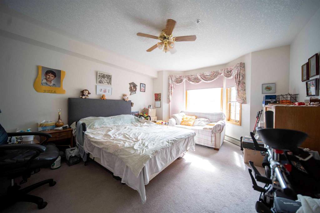A three-piece main bathroom and a large in-suite laundry room with abundant storage add everyday convenience. Additional thoughtful touches include a spacious entry foyer, tile flooring, a wall-mounted A/C unit, a large kitchen pantry, built-in features, and linen closets in both bathrooms. The west-facing balcony has been recently upgraded and partially enclosed to block the wind, making it the perfect spot to enjoy long summer evenings. Pride of ownership is evident throughout this warm and cozy home.