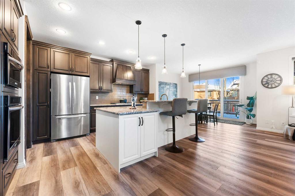 OPEN HOUSE on Sunday Feb 15th from 12-2 PM! Wow! Check out the view of the lake from the bonus room in this well kept, amazingly located home! As you enter this home you have a main floor office space that’s perfect for the work from home professional. As you make your way through to the main floor living spaces you will LOVE the central kitchen which features a walk through pantry, ample gorgeous two toned cabinetry, granite countertops, subway tiled backsplash, gas cooktop, wall oven and microwave and upgraded lighting. The dining area adjacent to the kitchen is big enough for a large dining table, the living room features a gorgeous tiled fireplace wall, modern industrial shelving, and plenty of natural sunlight! The main floor is completed with a huge mudroom, a half bath for your guests and views of the back yard from the back of the house. Upstairs is amazing and features a huge bonus room drenched in sunlight with soaring vaulted ceilings and EPIC views of the LAKE! down the hall there is a large laundry room with loads of cabinets for storage and a sink and it also connects directly to the walk in closet in the primary bedroom! The primary bedroom is a great size and features a spa like ensuite bathroom with an XL steam shower, heated floors, separate soaker tub, huge walk in closet with built ins, dual sinks and lots of storage! There are 2 additional bedrooms and another full bathroom for the kids upstairs! The basement is fully finished with a wet bar, huge rec room, a 4th bedroom and another full bathroom (also with heated flooring) This house has it all! Lake Views, amazing location, HEATED oversized garage, tankless hot water heater, A/C, beautiful upgrades, dog run, built in speakers in the basement, water softener, easy access to all the areas amenities, schools, parks, playgrounds, transit right outside your front door, off leash dog park, YMCA, the Hospital, tons of shopping, restaurants, pubs and easy access to Deerfoot and Stoney Trails! This one is truly a winner that checks all the boxes!