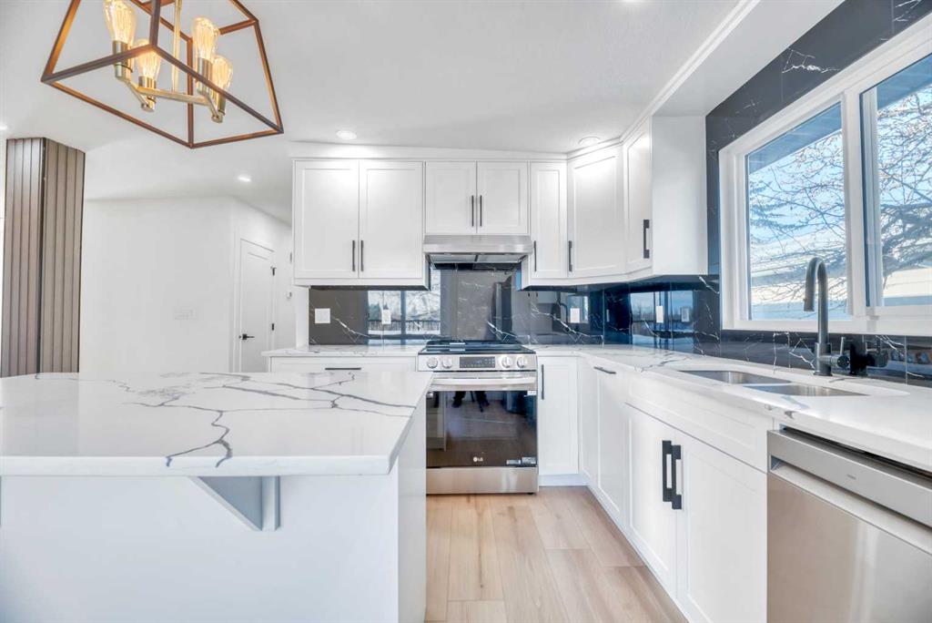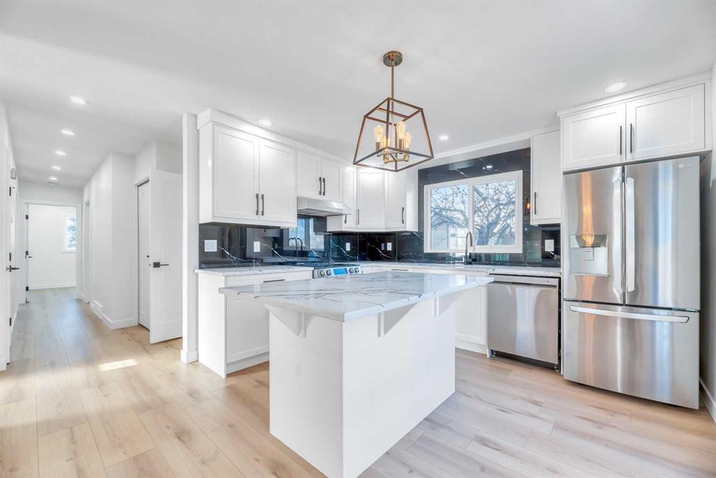 *** OPEN HOUSE: Sunday, January 11, 2:00-5:00PM *** WOW! Welcome to 128 Cantrell Place in Canyon Meadows, SW Calgary! This beautifully renovated, one-of-a-kind bungalow is situated on an incredible lot, on a quiet cul-de-sac, and boasts 2,400 square feet of fully developed living space, with 5 bedrooms and 3 bathrooms! The freshly remodelled open-concept main floor features 3 bedrooms, 2 bathrooms (including an ensuite with walk-in shower in the primary bedroom), modern kitchen (with brand new stainless steel appliances, quartz countertops and bright white shaker-style cabinetry), sunken living room (with electric fireplace and built-in cabinetry/shelving), sizeable dining room, main floor laundry, and ample storage/closet space! The newly and fully finished basement, with private separate side entrance, showcases an illegal basement suite with kitchenette, living/recreation room, 2 bedrooms, den/flex room, full bathroom, washer laundry hookup in the mechanical room, and an abundance of additional storage/closet space! Other noteworthy improvements here include: new vinyl windows, new exterior paint, new deck off of the kitchen (overlooking the backyard), and custom closet organizers in all the main floor bedrooms. This renovation was tastefully and seamlessly completed with consistent and matching finishings throughout! The spectacular west-facing front yard hosts an extra long driveway suitable for up to three vehicles (with plenty of room for a future garage), and the exquisite east-facing backyard is fully fenced and private, with two wooden decks for outdoor relaxation and entertaining! This property is located in the heart of Canyon Meadows, with close proximity to parks, playgrounds, schools, shopping, and public transit. Don’t miss out on this rare opportunity, call today!