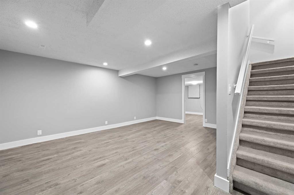 Welcome to your new home on one of the best streets in Castleridge! This charming 2 storey house with a finished basement is move-in ready, freshly painted throughout, and brimming with natural light. Perfect for families or first time buyers, this nicely updated home offers comfort, convenience, and a fantastic location. Step inside to the bright main level, where laminate flooring flows through the open concept living and dining areas. The living room’s large windows flood the space with sunlight, creating a warm and inviting vibe. The spacious kitchen is a standout, featuring a big window, newer stainless steel appliances, ample cabinetry, a stylish tile backsplash, vinyl flooring, and a door leading to the backyard – perfect for morning coffee or BBQs. A handy 2-piece bathroom completes this level. Upstairs, you’ll find a good sized primary bedroom with laminate flooring, big windows, a spacious walk-in closet with a pocket door, and a cheater door to the 4-piece bathroom. The bathroom shines with a modern vanity, tile flooring, and a tile tub/shower surround. Two additional bedrooms provide plenty of space for family or guests. The finished basement is a versatile gem, boasting laminate flooring, a large family room for movie nights or playtime, a den/office room, a laundry area, and clever under stairs storage to keep things tidy. Outside, the fenced West facing backyard is a delight, featuring a generous 21’x11’ deck for summer gatherings, a wooden storage shed, and plenty of green space for kids or pets to play. Location is everything, and this home delivers! Nestled in the vibrant Castleridge community, you’re steps away from the beloved Prairie Winds Park, perfect for a day out with the kids, weekend picnics or evening strolls. Families will love the proximity to top schools, including St. John Paul II, O.S. Geiger, Terry Fox, Grant MacEwan, Falconridge, St. John XXIII, and Bishop McNally High School – all just a short walk away. Need to shop or dine? Castleridge Plaza and Westwinds Corner are nearby, offering restaurants, professional services, and everyday conveniences. Plus, with quick access to McKnight Blvd and Stoney Trail, commuting is a breeze. Don’t miss out on this bright, updated, and family friendly home in a prime location. Call your agent today and see why this Castleridge gem is the perfect place to call home!
