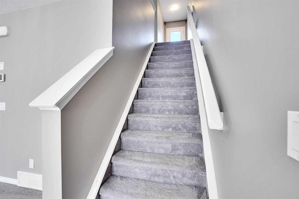 Stop paying rent NOW! When you can own this amazing, well maintained NO CONDO FEE, 2 storey row/townhouse, DOUBLE CAR GARAGE ATTACHED, home located in the heart of the highly sought after NE community of Cityscape. Built by Mattamy homes, this home is ideally situated close to bus stops, shopping centres, parks and pathways. The main floor is spaciously laid out to provide a very open-concept living/dining area, L shaped kitchen that offers stainless steel appliances, a 2pc half bathroom and carpet/tile flooring. Walking up the stairs you will be immediately greeted by the glass insert exterior door that leads to the large rooftop balcony. Down the hall you will find 2 good sized rooms, a 4pc bathroom and an open primary bedroom with an 3pc ensuite and walk in closet attached. Down below, the basement is undeveloped and is awaiting your ideas which includes rough in for a bathroom. Call your favorite realtor today for a showing!