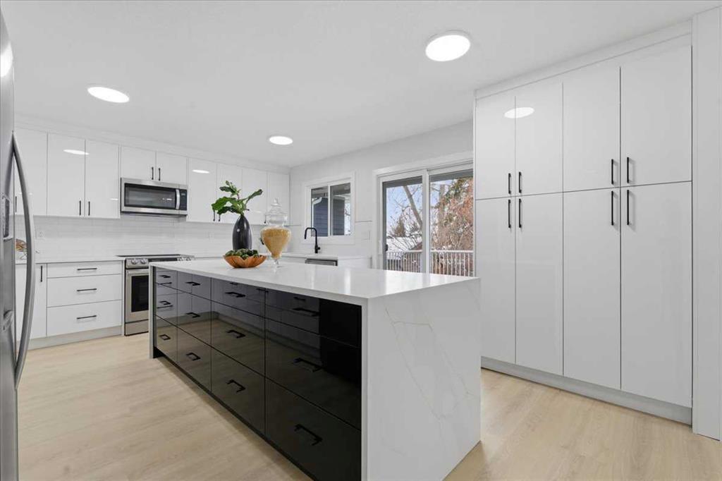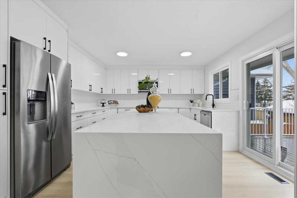 FULLY RENOVATED | DEVELOPED BASEMENT WITH WOOD BURNING FIREPLACE | GORGEOUS KITCHEN WITH SLIDING DOORS TO DECK | OPEN CONCEPT | PRIVATE SOUTH-FACING BACKYARD | Beautifully updated interiors create a warm and inviting atmosphere throughout this thoughtfully redesigned home offering an open concept layout, modern finishes and a bright south backyard. Luxury vinyl plank flooring flows throughout all levels, and corner windows fill the living room with natural light, encouraging relaxation and easy conversation. Clear sightlines into the dining area support seamless entertaining and effortless family meals. A stunning kitchen anchors the main floor with sleek 2 toned cabinetry, stone counters, a waterfall edge island and stainless steel appliances, all positioned to overlook the deck for a natural indoor-outdoor connection. The second level introduces a spacious bedroom with a custom walk-in closet and a stylish 3 piece bathroom, giving guests, teens or extended family a comfortable private space. Another level up, the indulgent primary retreat delivers a generous footprint, a custom walk-in closet and a luxurious 4 piece ensuite designed for everyday comfort, while the 3rd bedroom sits nearby for children or a home office. Practical function continues on the lower level with interior access to the double attached garage, a convenient laundry area and a separate entrance. The basement mirrors the home’s contemporary style with a huge rec room offering abundant space for movie nights, games and relaxed gatherings beside the cozy wood burning fireplace. A wet bar enhances hosting and makes snacks and drink refills effortless, complemented by a well-appointed 3 piece bathroom. Outside, mature landscaping elevates the sense of privacy while a massive 2 tiered deck provides space for barbequing, unwinding and soaking up the sunny south exposure. The large yard gives kids and pets room to play and garden enthusiasts room to create. This quiet Deer Run location is surrounded by endless recreation from the pathways of Fish Creek Park to the beach at Sikome Lake. Walk to Deer Run School, transit, an off-leash dog park, the community centre and numerous shops and restaurants. Nature trails, Annie’s Café and The Bow Valley Ranche sit moments away, offering simple lunches, ice cream treats, coffee dates and elevated dinner experiences. This beautifully updated home delivers comfort, style and everyday convenience in one of Deer Run’s most naturally connected settings.