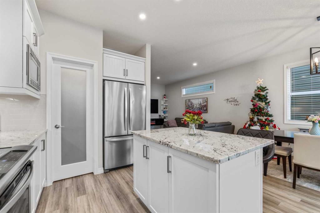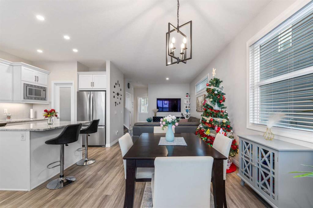 Welcome to this beautifully maintained 3-bedroom, 2.5-bathroom end unit townhouse offering style, space, and convenience! Located in a desirable neighborhood of Evanston, five minutes drive to Stoney Trail, fifteen minutes drive to Calgary Airport, this home features a double garage, fully developed backyard and a functional, open-concept layout that’s perfect for modern living. The main floor showcases durable laminate flooring, a bright and spacious living area, and a well-appointed kitchen that flows effortlessly into the dining space—ideal for everyday living or entertaining. Upstairs, you’ll find three generously sized bedrooms, including a primary suite with a private 4-piece ensuite and walk-in closet. The unfinished basement offers endless possibilities for future development—whether you need extra living space, a home office, or a gym. This end unit offers extra privacy, added natural light, and the bonus of a rear deck—perfect for relaxing or BBQs year-round. Whether you’re a first-time buyer, investor, or looking to downsize, this property is a must-see. There are solar panels on the roof to help reduce utilities at the peak of our beautiful Calgary weather conditions.