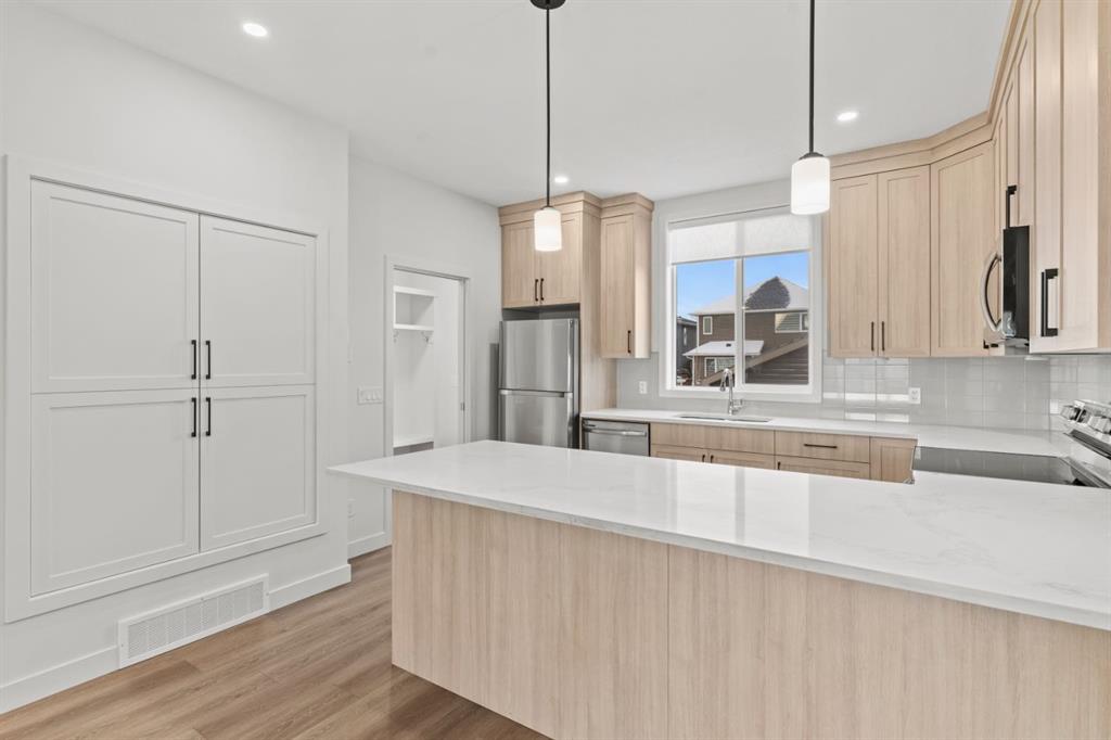 A rare opportunity in Fireside! This beautifully maintained 2-storey home with a fully permitted LEGAL basement suite offers exceptional flexibility—perfect for investors seeking strong cashflow or families wanting meaningful mortgage support. Ideally located steps from schools, parks, pathways, and local shopping, it pairs income potential with everyday convenience. The main level features an open-concept layout with 9’ ceilings, a bright front living room, a central dining area, and a modern back kitchen with ample counter space, generous cabinetry, and a separate wall pantry. A rear mudroom with access to the deck and yard plus a half bath complete the level. Upstairs, the primary bedroom includes a walk-in closet and private ensuite, along with two additional bedrooms, a 4-pc bath, and upstairs laundry. The legal basement suite offers a private entrance, large windows, a full kitchen, in-suite laundry, a spacious bedroom, and a 4-pc bath—ideal for extended family or steady rental income. It was previously rented for $2,750/month (upper) and $1,575/month (lower) including utilities. A detached double garage, welcoming curb appeal, and quick access to Highway 22, the Trans-Canada, Calgary, and the mountains round out this outstanding property. Whether you’re an investor, a multi-generational household, or a buyer looking to offset monthly costs, this Fireside home is a standout. Don’t miss it.