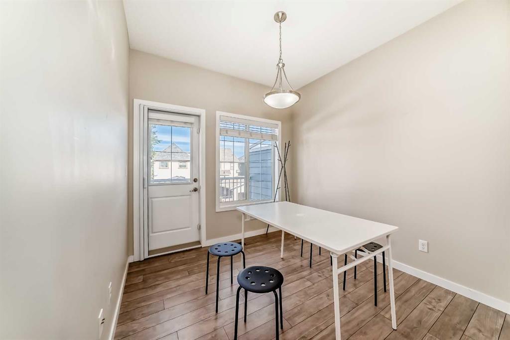 Welcome to this charming 2-bedroom plus den townhouse nestled in the picturesque lake community of Mahogany! Perfect for investors, first-time buyers, or those looking to downsize, this home showcases a modern open-concept design with 9-foot ceilings that seamlessly connect the living room, dining area, and chef’s kitchen. The kitchen is a standout, featuring sleek granite countertops with an extended island, stainless steel appliances, pantry, and ample storage. Step out onto the sunny balcony with gas line, ideal for barbecues and evening sunsets.