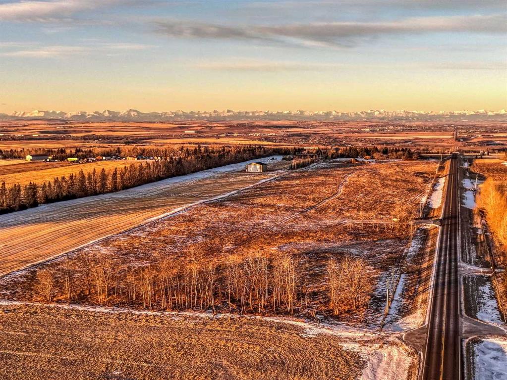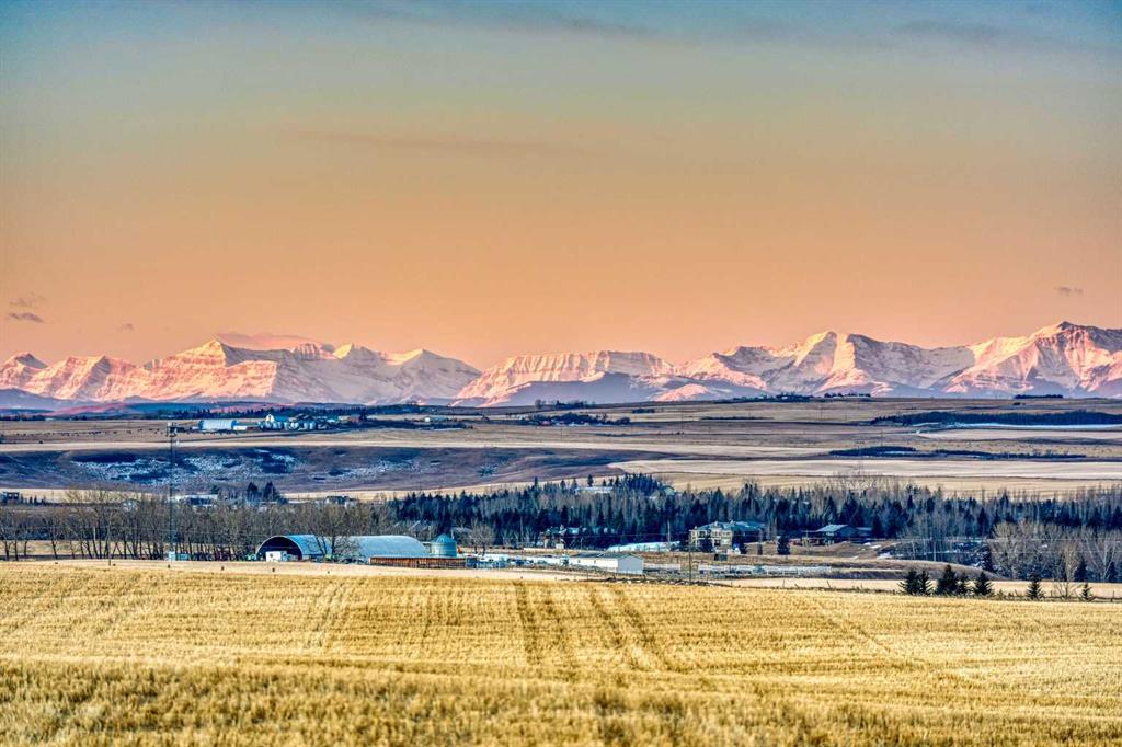 Prime Alberta land. Strong water. Services along the property line.Endless views. Incredible neighbours yet spectacular privacy. Imagine building your country dream home on a picturesque 5 acre parcel in the coveted Gladys Ridge area, just East of Okotoks and only 20 minutes south of Calgary. Thoughtfully shaped by nature, the property features pockets of mature trees, expansive valley views and distant city vistas, all anchored by a brand new drilled well producing a strong 5 gallons per minute, a highly desirable water supply for rural living. The land gently opens toward the horizon, creating an ideal canvas for a custom country residence where styles such as modern farmhouse, prairie contemporary, timeless ranch or the popular craftsman would feel perfectly at home. From your future windows and outdoor living spaces, enjoy sweeping views of the majestic Rocky Mountains, ever changing skies and unforgettable sunsets that paint the foothills nightly. Days begin with the sun rising over golden farmer’s fields that seem to stretch forever, while evenings invite star gazing, wide open skies and the occasional northern lights dancing above the ridge. Located across from an equestrian ranch and surrounded by rolling wheat and canola fields, this setting offers a peaceful rhythm of country life with the simple joy of walking along the nearby ridge and taking in the spectacular mountain peaks in the distance. Despite its serene and private feel, this property is just minutes from Okotoks and approximately 20 minutes to Calgary, offering easy access to top schools, sports arenas, and the South Campus Hospital and an abundance of dining and shopping amenities. With no architectural controls or timelines to build, fencing in place, strong water supply, and all the services (electricity/gas) located along the property line, this is a rare opportunity to create your dream home exactly as you envision it on prime Alberta land, surrounded by great neighbours, natural beauty and space to truly breathe.