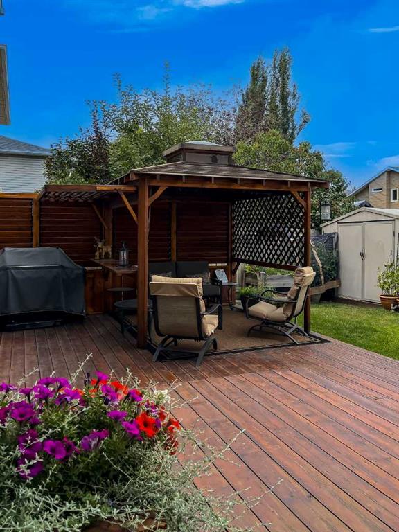 Open House – Saturday May 2, 12-2pm | We’re pleased to be presenting this beautifully maintained family home in the sought-after lake community of Sundance—offering the perfect blend of comfort, functionality, and year-round lifestyle. This spacious two-storey home has an amazing yard that backs onto a playground and park so you can keep an eye on your little ones from the kitchen! The home itself features 4 bedrooms up, ideal for growing families, along with a versatile main floor office or optional bedroom—perfect for guests or working from home. The heart of the home showcases rich hardwood flooring, creating a warm and inviting main level designed for both everyday living and entertaining. The kitchen is open to the family room and features updated stainless-steel appliances, beautiful oak cabinets, and granite counters. Upstairs, the generous primary retreat includes a 5-piece ensuite and a walk-in closet, along with the 3-additional bedrooms and a shared 4-pc bathroom. The fully developed basement adds even more living space with brand new carpet and a pool table included—making it the ultimate hangout zone. Major updates provide peace of mind: double-pane windows (2023), central A/C (2022), hot water tank (2023), and all Poly-B plumbing has been replaced with PEX. The roof is approximately 10 years old, and the home is equipped with a wood-burning fireplace with gas starter, complete with upgraded chimney paneling and refractory walls. Step outside to enjoy your private backyard, already wired for a hot tub with electrical conveniently run beneath the deck—ready for your future oasis. The deck and pergola are beautiful and help expand your ability to host and enjoy the setting. The yard has a trailer gate with ample trailer parking as well. Of course, having the playground and park right out your back gate will be a hit and keep your kids outside getting sun in their eyes and wind in their hair. Residents of Sundance have access to one of the most desirable lakes in the city, as it offers year-round recreation including swimming, skating, schools, parks, and quick access to major routes. Fish Creek Park is a bike ride away, and for active families you really can’t ask for more. This is a fantastic opportunity to own a move-in-ready home in a prime family neighbourhood, we’d love to accommodate your showing needs!