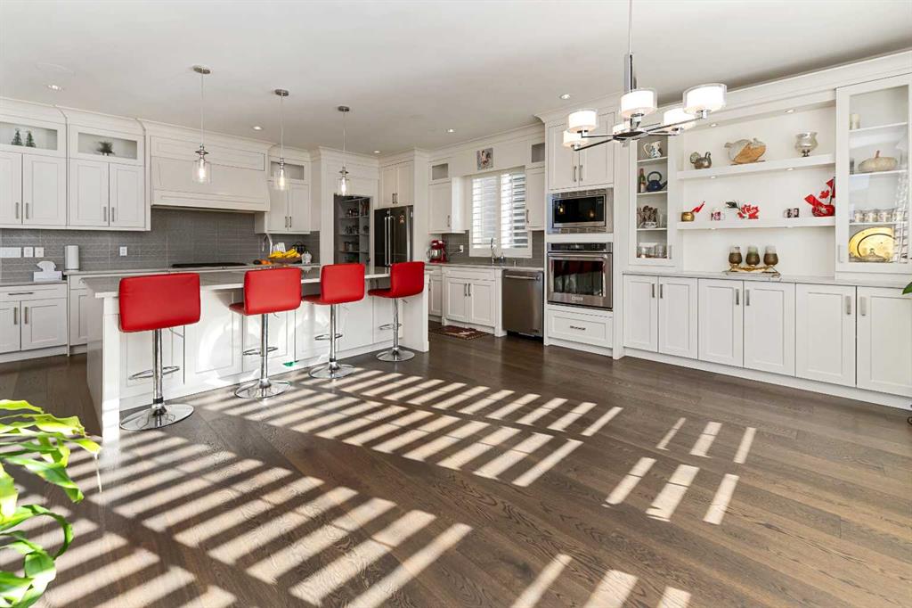 Experience the pinnacle of suburban luxury at 129 Kinniburgh Gardens, a masterfully crafted residence by Sun Star Homes situated on a premium corner lot in Chestermere. This sprawling 2-storey home offers an abundance of sophisticated living space, highlighted by an open-to-above family room, high-end California blinds, and custom woodwork that flows seamlessly from the main-floor office to the massive dining area with its built-in wine rack. The gourmet chef’s kitchen is a showstopper with quartz countertops and a walk-through pantry, while the upper level serves as a private sanctuary featuring a vaulted master suite and a versatile bonus room with integrated ceiling speakers. Beyond the four spacious upstairs bedrooms, the fully finished basement adds incredible value with a second kitchen, a large rec room, and two additional bedrooms—perfect for guests or multi-generational living. Complete with a west-facing backyard, custom metal fencing, and professional landscaping, this home offers an unparalleled lifestyle just minutes from Chestermere Lake, top-tier schools, and local amenities. This is a rare opportunity to own a home where every detail has been thoughtfully curated for a life of comfort and prestige.
