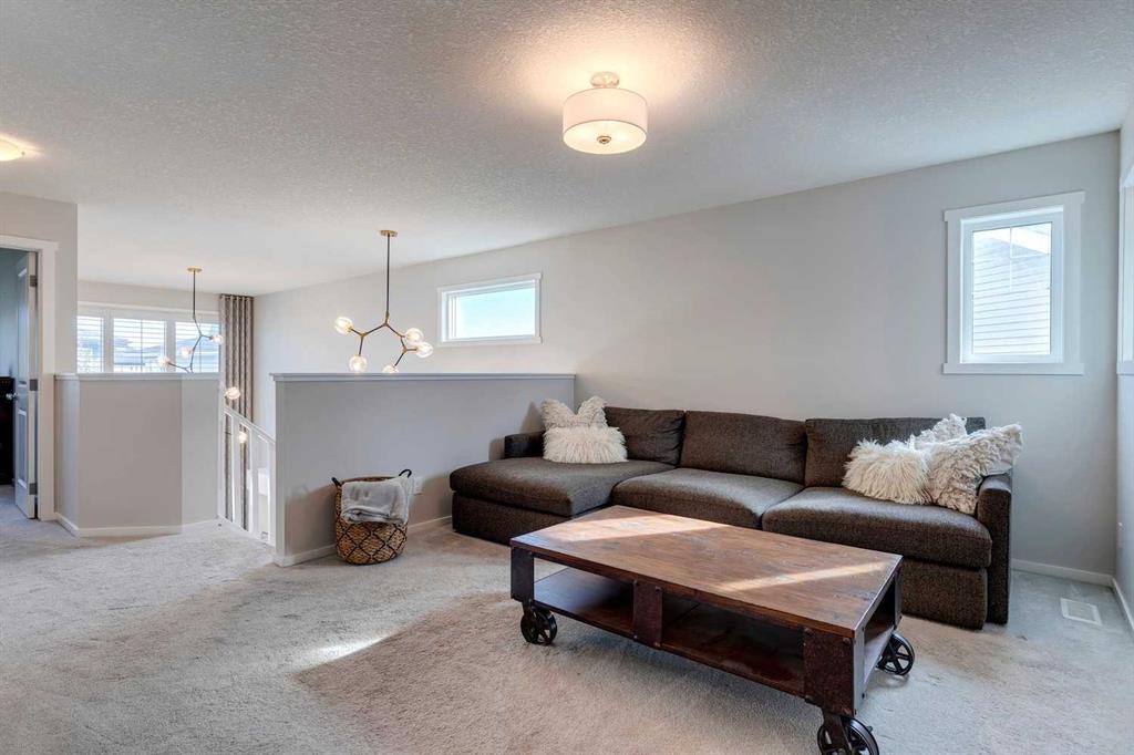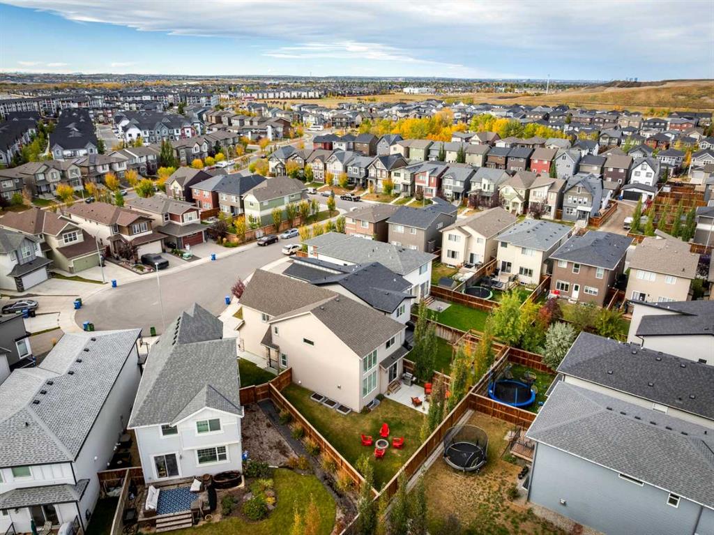 This stunning and fully developed 2-storey home with over 2,900 SQ FT of living space in Walden feels like new and is perfectly tucked away in a rare, quiet cul-de-sac, offering modern comfort, thoughtful upgrades, and exceptional build quality throughout. The main floor welcomes you with 9′ ceilings, a spacious office off the front entrance, and an open-concept layout ideal for both family living and entertaining. The living room impresses with 18′ vaulted ceilings, a gas fireplace, and luxury vinyl plank flooring, while the kitchen showcases quartz countertops, a large island with breakfast bar, ceiling-height cabinets, and a convenient walk-through pantry connecting directly to the garage entry. All stainless steel appliances were replaced in December 2023 at a cost of $20,000, including a Bosch fridge and dishwasher, JennAir stove and hood fan, and a Breville toaster oven/air fryer instead of a microwave, with several smart-app controls for convenience. The home also features all new light fixtures from 2023, adding to its bright and polished look. Upstairs offers a bright bonus room, a large primary suite with a five-piece ensuite including dual sinks, a soaker tub, tiled shower, and a walk-through closet leading directly to the laundry room with built-in shelving. Two additional bedrooms, both with walk-in closets, share a full bathroom with a tub/shower combo, creating a perfect family-friendly layout. The brand-new basement, completed in 2025, provides even more living space with a bedroom, full bathroom with a beautifully tiled shower, a spacious living room, oversized storage room, and luxury vinyl plank flooring throughout. Additional updates include added insulation to basement walls, CAT6 internet wiring throughout, and roughed-in A/C for future comfort. The attached double garage features high ceilings and a smart garage door opener, while a smart thermostat adds even more tech-friendly functionality inside the home. The fully fenced southeast-facing backyard is private and beautifully landscaped, featuring a built-in fire pit, gas BBQ hook-up, concrete patio, and plenty of room to relax or play. The oversized hot water tank is one year newer than the home, and custom shutters and blinds add a finishing touch throughout. Built by Homes by Avi and lovingly maintained by the original owners, this home stands out for its quality and care. Walden is one of Calgary’s most sought-after communities, offering serene parks, walking paths, playgrounds, a clear-water pond, and convenient access to amenities like grocery stores, restaurants, and services. Families will appreciate proximity to top schools, including All Saints High School, St. Sebastian Elementary, Chaparral School, St. Sebastian School, Father James Whelihan School, and Centennial High School. With fantastic neighbours, stylish finishes, smart home features, and a prime cul-de-sac location, this exceptional Walden home offers a turnkey lifestyle that’s move-in ready and truly special.