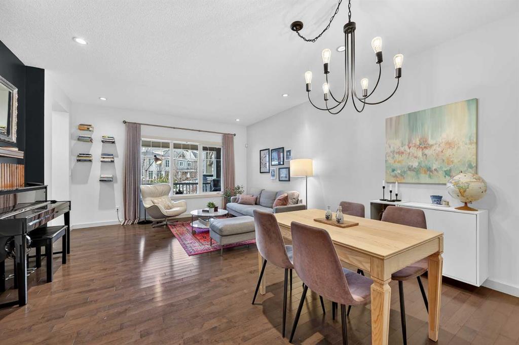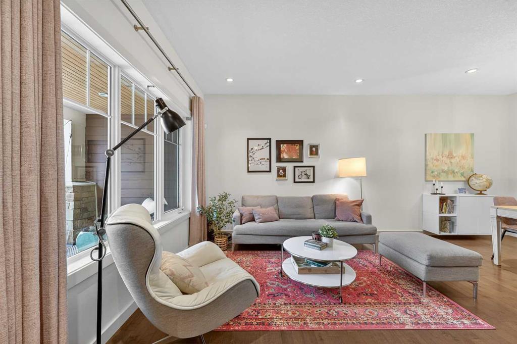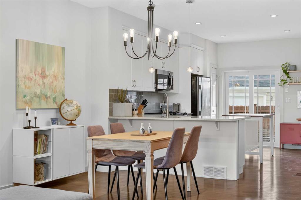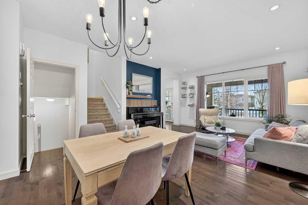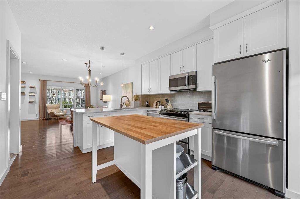 A rare opportunity to own a meticulously maintained and upgraded townhome in the award-winning Currie Barracks community, where quality and lifestyle come together in perfect harmony. This Homes by AVI “Mahoney” model delivers nearly 2,200 sq ft of developed living space over three well-planned levels, with 3 bedrooms up and 4 bathrooms. Natural light floods the open-concept main floor, highlighting hardwood floors, 9′ ceilings, and a living area that flows into the kitchen and dining space. The sunny west-facing front porch invites you to unwind, and the kitchen’s quartz countertops, stainless steel appliances, abundant storage, and direct access to the private patio and fenced yard make everyday living and entertaining effortless. Imagine peaceful mornings in the primary suite, complete with a full walk-in closet and luxurious 5-piece ensuite, while two additional spacious bedrooms and a full bathroom complete the upper level. The fully developed basement (with permits) expands your lifestyle options with a family room, a home office or den, 2-piece bathroom, and extra storage. An insulated single attached garage and generous front entry add daily convenience, while a newly installed 4 kW solar system means meaningful energy savings and added long-term value. Situated steps from parks, playgrounds, and excellent schools including Montessori programs, and with quick access to Crowchild Trail, Sarcee Trail, Marda Loop, and Westhills Shopping Centre, this home delivers inner-city living with a true community feel. Currie Barracks is continuing to evolve with future shops, cafes, and amenities, making this an outstanding lifestyle choice and investment.