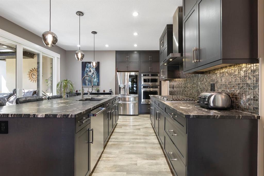 Welcome to this fully loaded luxury home designed with every detail in mind. Offering over 4,000 SF of finished living space, 6 bedrooms, and over $300K in recent upgrades inside and out, this home is truly perfect for a large or growing family. From the oversized heated 3-car garage with epoxy floors to the stunning indoor/outdoor living spaces, this property offers the ideal balance of function, comfort, and lifestyle. The heart of the home is the chef-inspired kitchen featuring leathered granite counters, under-cabinet lighting, high-end stainless steel appliances including a 5-burner gas stove, convection oven, LG fridge with sphere ice maker, microwave, plus a second fridge and wine fridge in the large pantry. A dedicated coffee station makes mornings effortless. The main floor also includes a private office, an expansive living room with a dramatic two-way fireplace, plus laundry with a convenient laundry chute. Upstairs, retreat to the luxurious owners’ suite with its private balcony, coffee station, custom dressing room, and spa-inspired ensuite with heated floors, marble vanities, oversized glass shower, skylight, and jetted tub. Three additional bedrooms with blackout shades, a full bathroom with double sinks, and a versatile bonus/games room complete the upper level. Remote blinds on front and upper bedroom windows have been add both comfort and privacy. The basement is designed for entertaining and extended family living with a full wet bar (fridge, microwave, dishwasher), second laundry, and a separate entrance. Outdoors, enjoy an automatic 4-season screened-in porch with a louvered roof, gemstone lights, irrigation, raised garden beds, water feature, cushioned turf, and a large storage shed. The low-maintenance yard and side yard access make this space practical as well as beautiful. Additional features include built-in ceiling speakers, water softener, instant hot & cold tap in the kitchen, air conditioning, decorator finishes, and an extra-long driveway with paved alley access. Located minutes from top-rated schools, Bingham Crossing, coffee shops, daycare, and upcoming amenities including a new Costco, Nordic Spa, and the East Harmony Trail extension, this property also offers easy access to downtown Calgary, the Springbank Airport, Calaway Park, and the Rockies. This is more than a home—it’s a complete lifestyle in Harmony with Lake Access. Book your private showing today and experience all the upgrades and comforts for yourself.