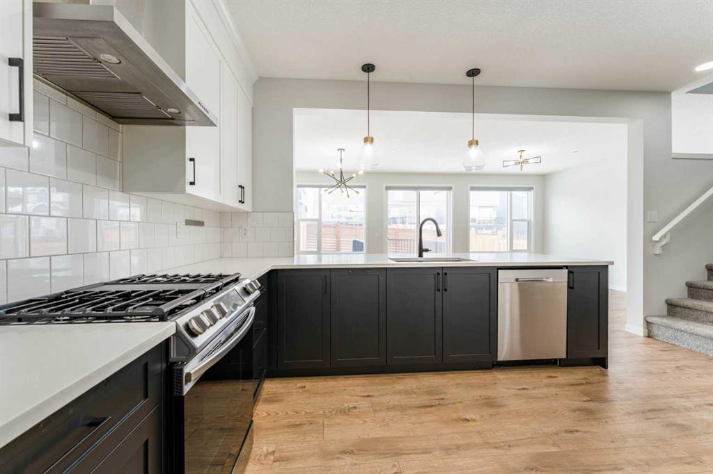 Thoughtfully designed for modern family living, this impressive home begins with a bright and functional main floor featuring 9-foot ceilings, elegant LVP flooring, and impressive 8-foot doors that enhance the sense of space throughout. The chef-inspired kitchen is equipped with stainless steel appliances, a gas range, chimney hood fan, built-in microwave, and upgraded paint-grade cabinetry, creating a stylish and practical space for cooking and entertaining. A main-floor bedroom and full bathroom provide the perfect setup for guests, extended family, or a convenient home office.