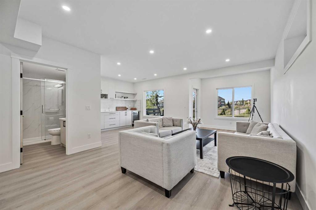 Live in Cranston’s exclusive Riverstone with this two-storey family home, with almost 3000 sqft of developed living, walking out directly onto natural amenities. Your next home features an expansive 140 ft lot, providing a deep backyard that walks out to peaceful ponds and scenic walking paths. The smart floor plan includes 4 bedrooms and 3.5 bathrooms, placing all bedrooms on the upper level alongside a spacious bonus room. The open-concept main floor features 9 foot ceilings and oversized windows that frame direct sightlines to the water and trails behind. A gourmet kitchen anchors the home with an 8-foot island, quartz countertops, stainless steel appliances, and an extended walkthrough pantry for generous storage and prep space. Upstairs, the primary suite serves as a private retreat with a 4-piece ensuite, deep soaker tub, glass shower, large vanity with a makeup area, and a large walk-in closet. Recent interior upgrades include new lighting throughout, including chandeliers, ceiling fans, and pot lights. The fully developed walkout lower level, finished in 2025, adds over 730 sq ft of functional living space with a wet bar/kitchenette, large recreation room, office nook, full 3-piece bath, and dual storage rooms. An insulated, attached double garage completes the functional layout. Enjoy multiple outdoor living options, including an expansive upper deck with a natural gas hookup, an oversized ground-level patio, and meticulously maintained landscaping. Access the Bow River and regional pathway system right from your back gate. This location offers quick access to Deerfoot and Stoney Trails and sits minutes away from the Seton YMCA, excellent schools, and diverse shopping and dining. Do not miss this opportunity to bring your family to Cranston’s most desirable upscale enclave.