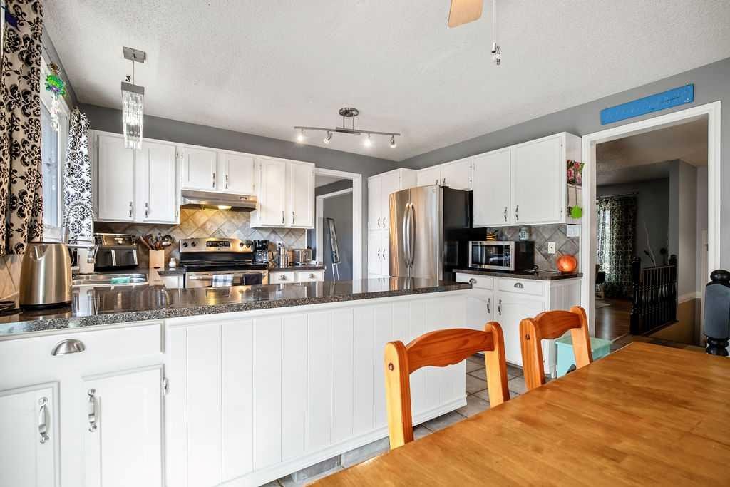 Offering over 2,225 sq. ft. above grade plus additional developed basement space, this 4-bedroom home delivers exceptional flexibility for growing families, entertainers, hobbyists, or anyone needing room to spread out. The bright and welcoming main floor features large windows, warm, durable vinyl flooring, and multiple gathering spaces including a formal living room,, dining area, and an updated kitchen with stainless steel appliances, ample cabinetry, and a sunny breakfast nook overlooking the backyard.