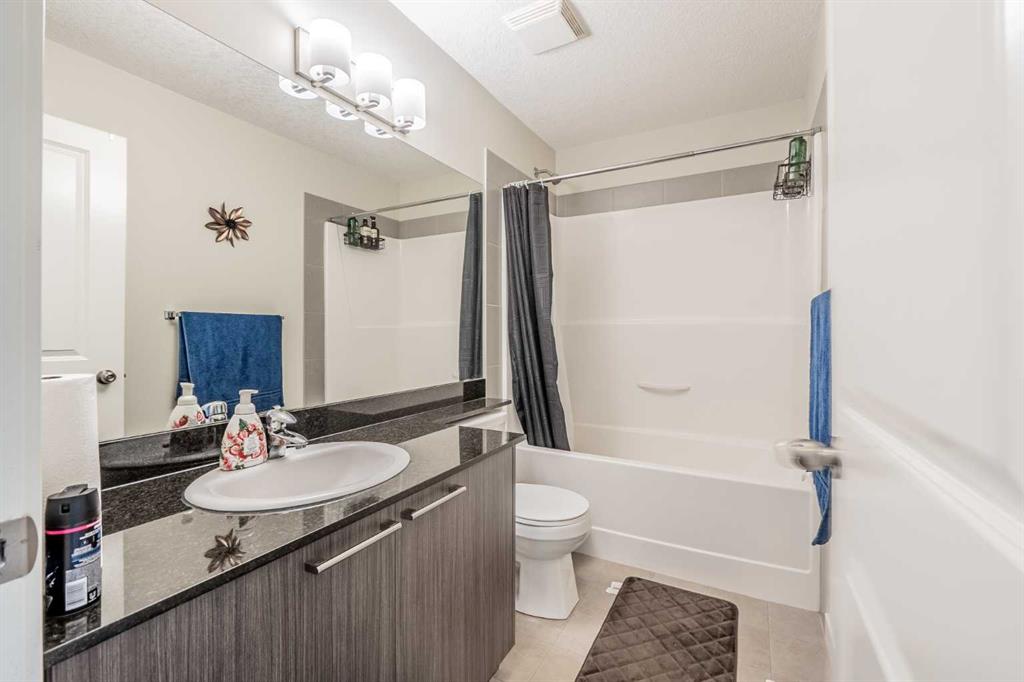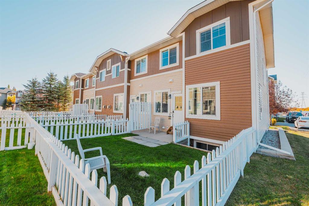 Welcome to your new home in Chestermere Station. This bright and spacious end-unit townhouse offers the perfect blend of comfort and convenience. Nestled beside a large green space and just steps from a leash dog park, this home provides the lifestyle you have been looking for. Visitor parking is conveniently located right next door and you will appreciate the Calgary Transit stop just a few steps away. Inside, you are greeted with 9-foot knock-down ceilings, stylish laminate flooring and an open-concept layout that seamlessly connects the living, dining and kitchen areas. The modern kitchen showcases rich dark cabinetry, granite countertops, and plenty of workspace for everyday living. From the dining area, step out to your fenced private yard ideal for morning coffee or evening relaxation. Upstairs, the primary suite easily fits a king bed and features a walk-in closet with window and a 4-piece ensuite. Two additional bedrooms, another full bath with granite counters, and convenient upper-floor laundry complete this level. The fully finished basement offers a spacious family room and a rough-in for a future bathroom, providing great flexibility for your growing needs. Enjoy the single attached garage with driveway parking, plus a location close to shopping, schools and amenities. This Chestermere townhouse is move-in ready and waiting for you. Book your private tour today!