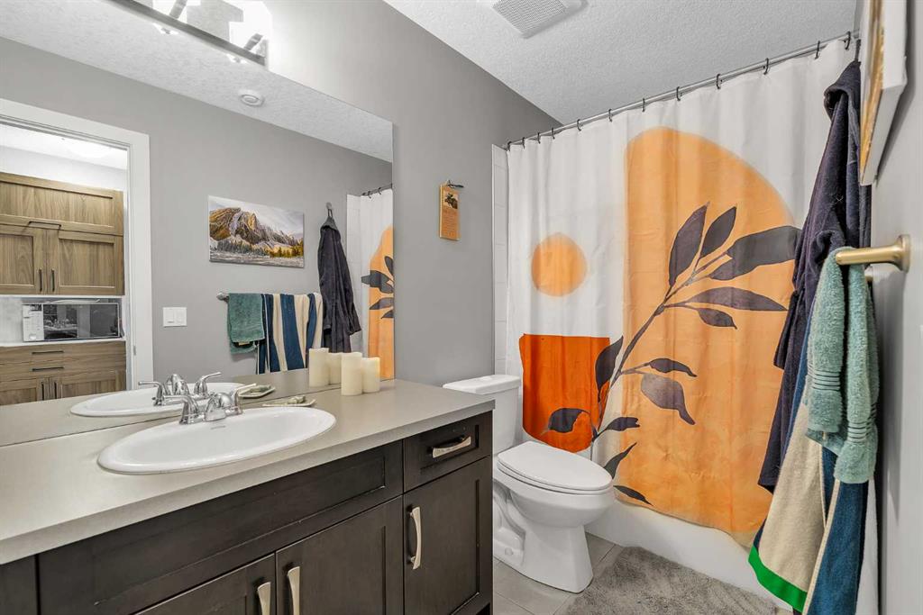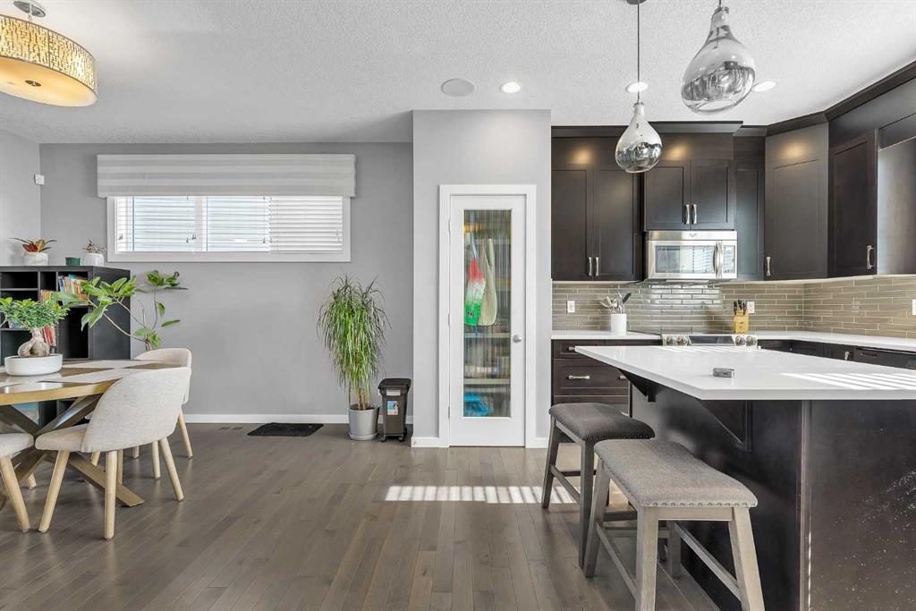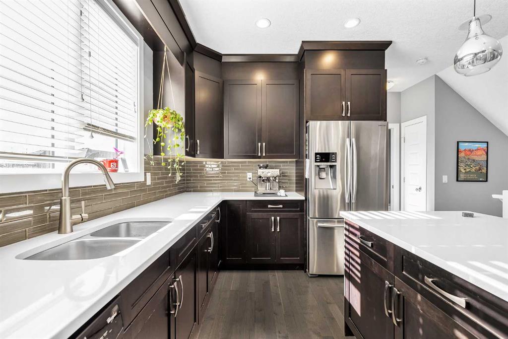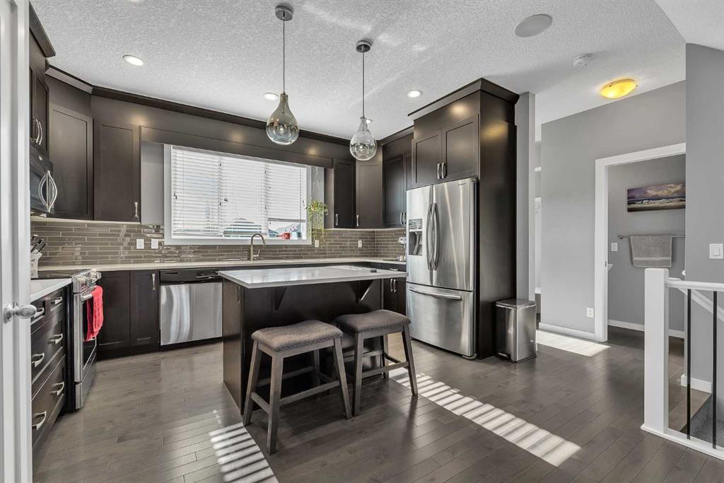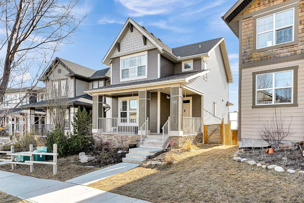 Upgrades, style, and versatility come together at 130 Heritage Drive in Cochrane. This former showhome offers exceptional curb appeal with upgraded landscaping and durable Hardie Board siding, while the inviting front porch is the perfect place to enjoy sunny mornings and warm summer evenings. Step inside to discover an air-conditioned home filled with quality finishes, including hardwood floors, 9-foot ceilings, built-in speaker system, and a bright open-concept main floor designed for everyday living and entertaining. The beautifully upgraded kitchen is the centerpiece of the home, featuring stainless steel appliances, quartz countertops, a large island, ample cabinetry, and a dedicated pantry. From here, step out onto the oversized west-facing rear deck, where you can soak up the sunshine and enjoy peek-a-boo mountain views. The main floor is completed by a convenient 2-piece bathroom, rear mudroom, and a functional workspace. Upstairs, the spacious primary suite stands out with its vaulted ceilings, walk-in closet, and a well-appointed 4-piece ensuite complete with a soaker tub and in-floor heating. Two additional bedrooms, another full 4-piece bathroom, and an upstairs laundry room add convenience for growing families. The fully developed walkout basement features a bright and well-designed legal 1-bedroom suite, ideal for rental income, multigenerational living, or extended family. This lower-level space includes a stylish galley kitchen, 4-piece bathroom, dedicated laundry, comfortable bedroom, and a sunny sitting area with abundant natural light from the west-facing walkout. Step outside to the covered patio and enjoy easy access to the yard and additional parking. Parking is no issue here with a double detached insulated garage plus an additional parking stall. This is a turnkey opportunity for buyers seeking a home with income potential, flexibility, and standout upgrades in one of Cochrane’s desirable communities. Book your showing today.