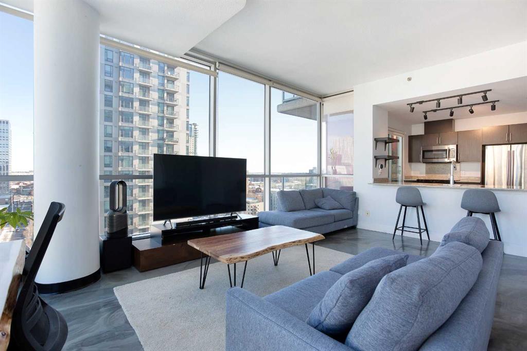 Perfectly positioned in the heart of Calgary’s vibrant Beltline on 1st Street SW, this bright corner-unit condo offers 2 bedrooms, 1 bathroom, and 687 sq. ft. of thoughtfully designed living space, surrounded by wraparound windows that flood the home with natural light and showcase beautiful city views.