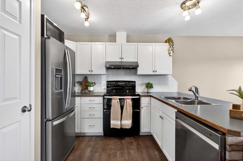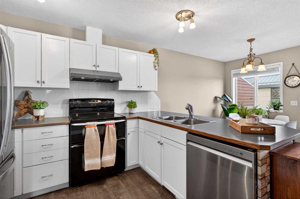 Step into a bright, open main floor with a welcoming front foyer. The sunny east-facing kitchen, living, and dining areas are perfect for family living and entertaining. The cook-friendly kitchen boasts ample cabinets, a breakfast bar, pantry, and new fridge and dishwasher, ensuring peace of mind for years to come. Enjoy meals in the spacious dining nook, with patio doors leading to a new PVC deck (Being installed next week!) and fenced backyard—ideal for relaxing or hosting summer BBQs. A convenient two-piece powder room completes the main level. Upstairs, discover three bedrooms, including a generously sized primary bedroom with a 4-piece ensuite, a full 4-piece family bathroom, and an upstairs laundry room. The finished lower level expands your living space with a large family room or bedroom, a massive walk-in closet, storage area, 3-piece bathroom, and a second laundry hookup. Thoughtful features include ceiling fans, electrical outlets for a basement fridge and rough in for a bar sink. Great if you want to do a basement bar!